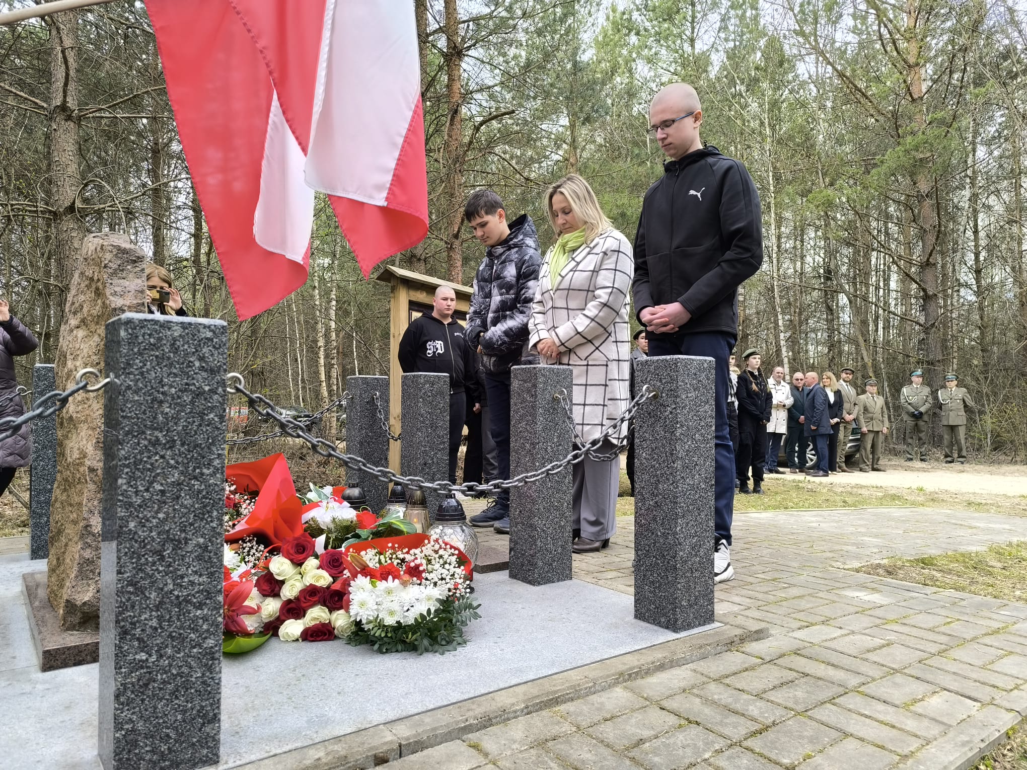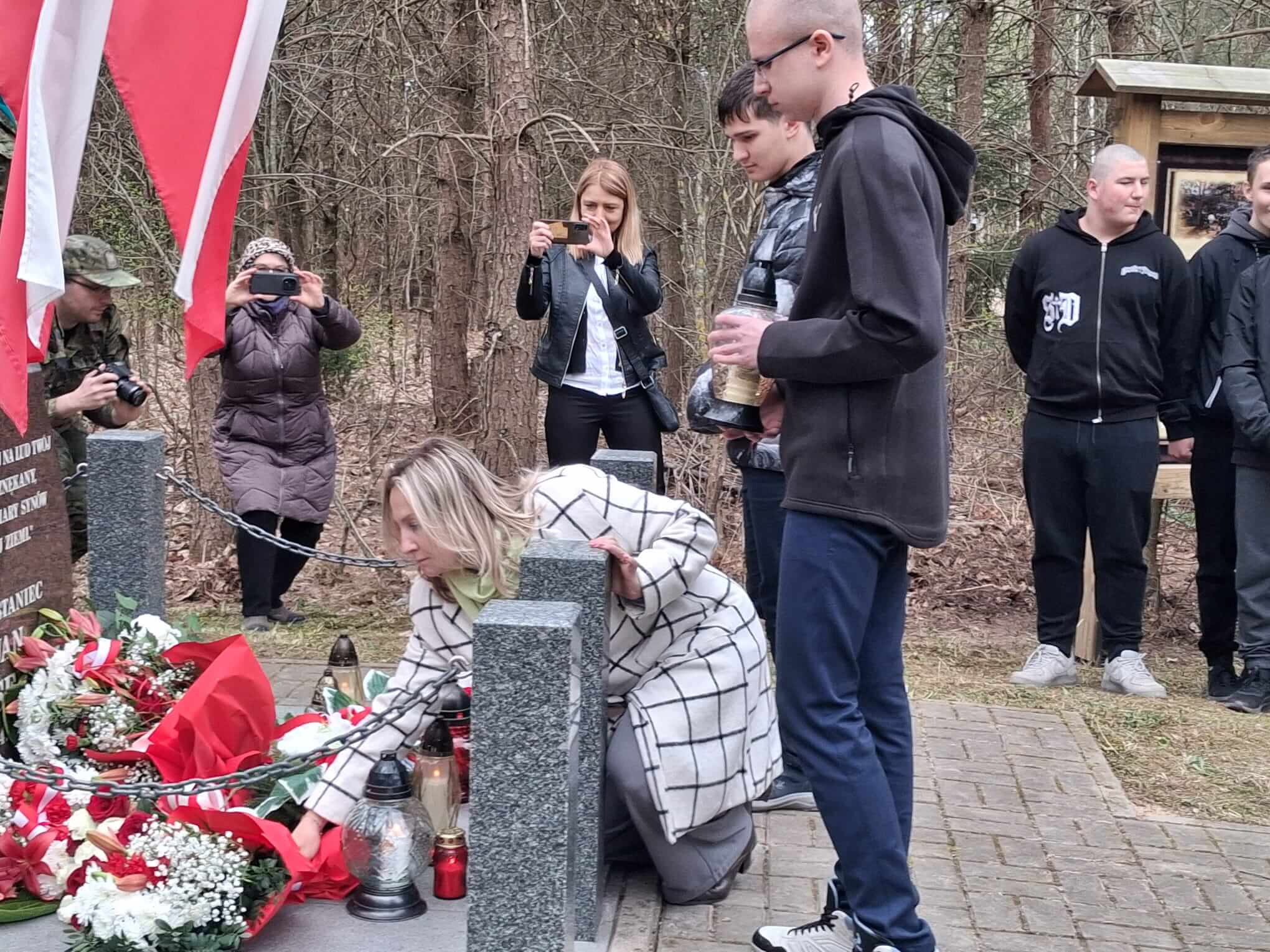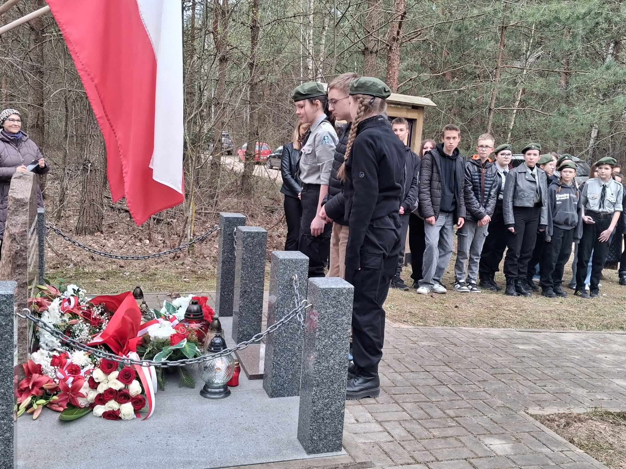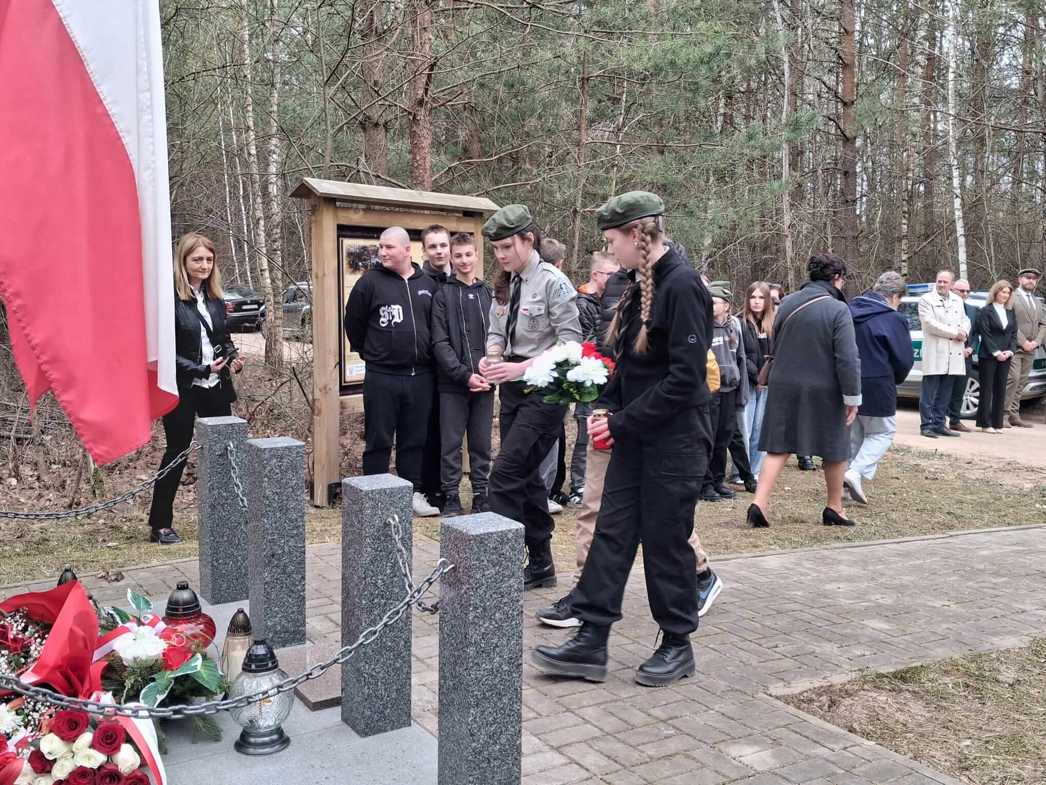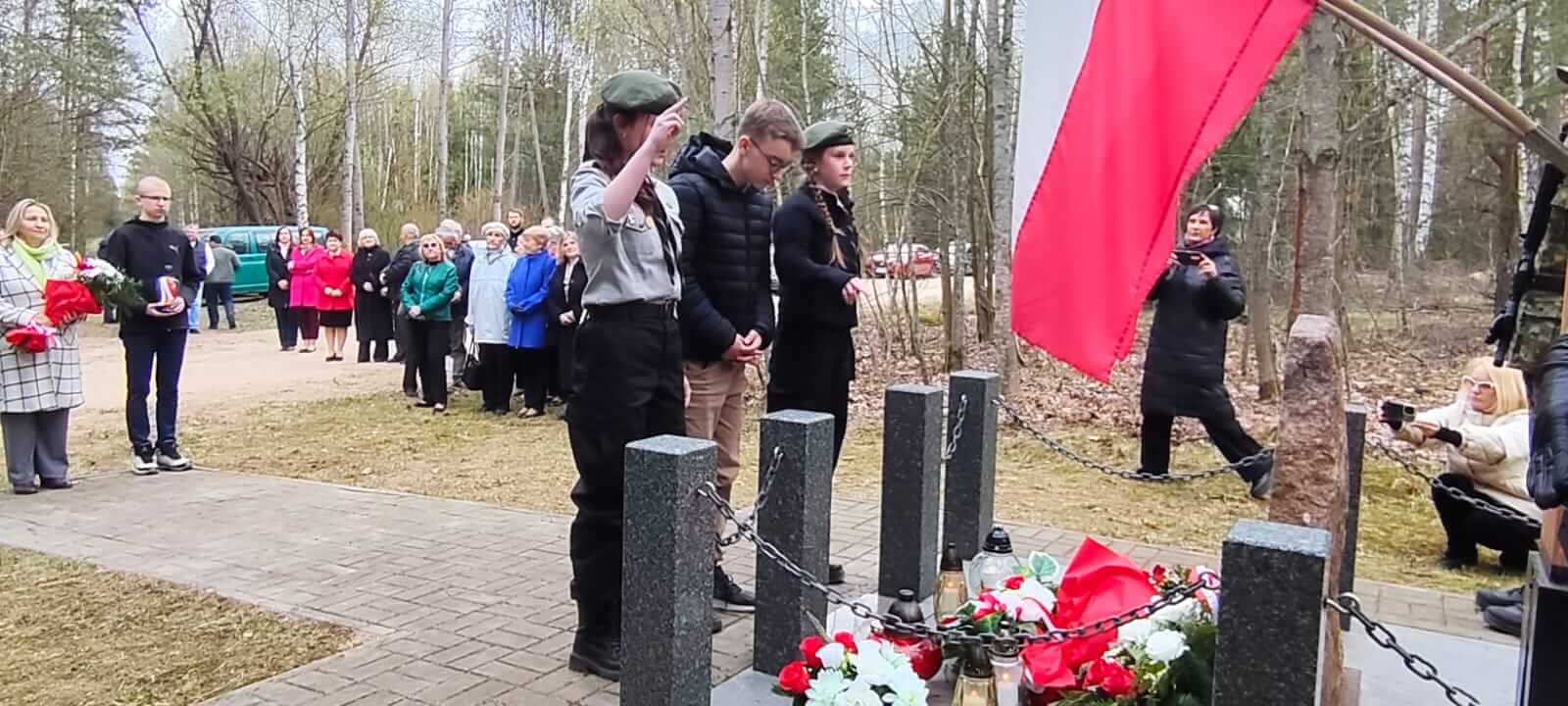 Po nabożeństwie uczestnicy przeszli pod miejsce kaźni Jana Kłusewicza, gdzie odbyła się dalsza część uroczystości patriotycznej. Przy miejscu pamięci delegacje złożyły kwiaty i zapaliły znicze, oddając cześć bohaterowi, którego los na zawsze zapisał się w historii naszej ziemi.