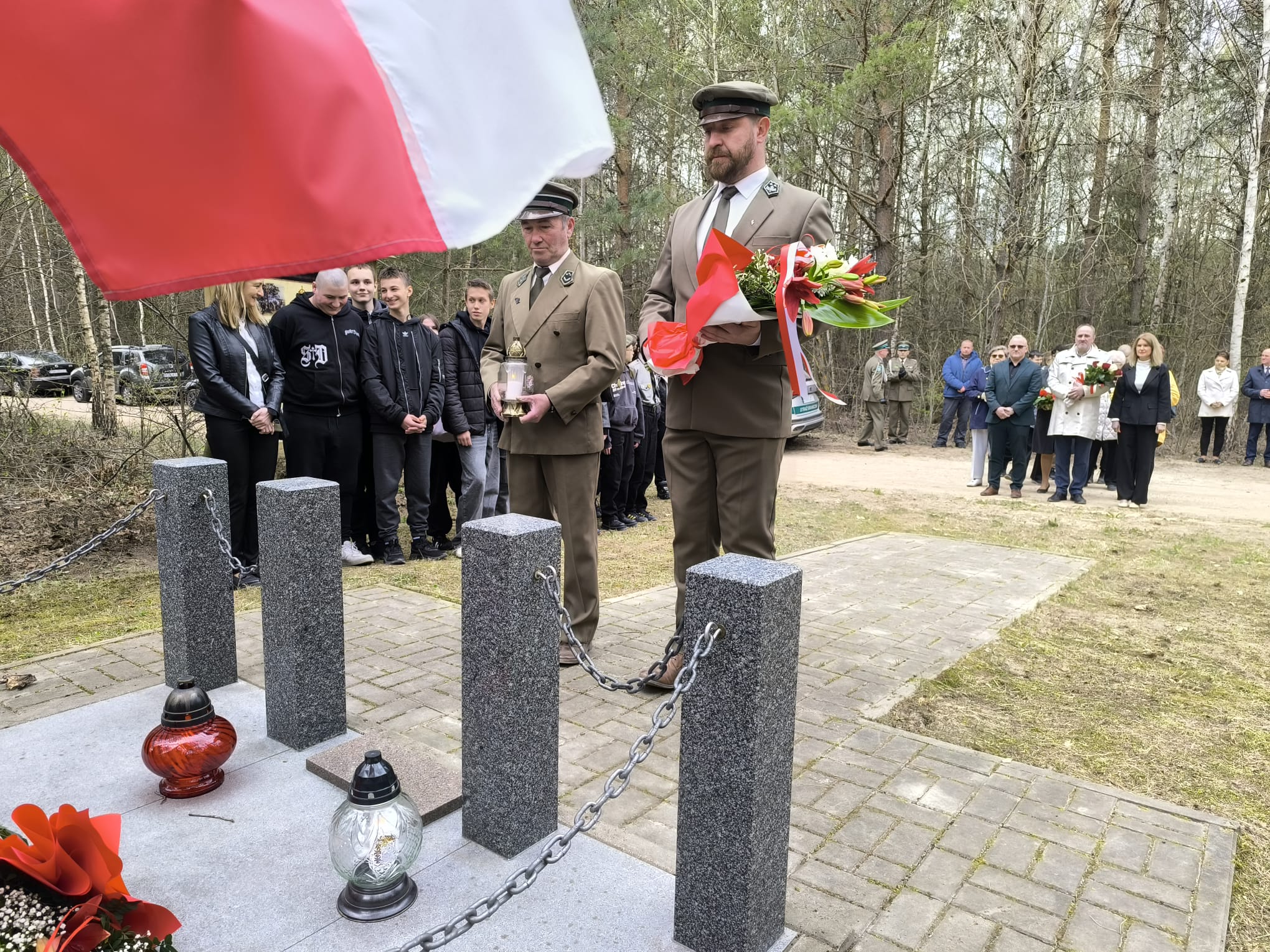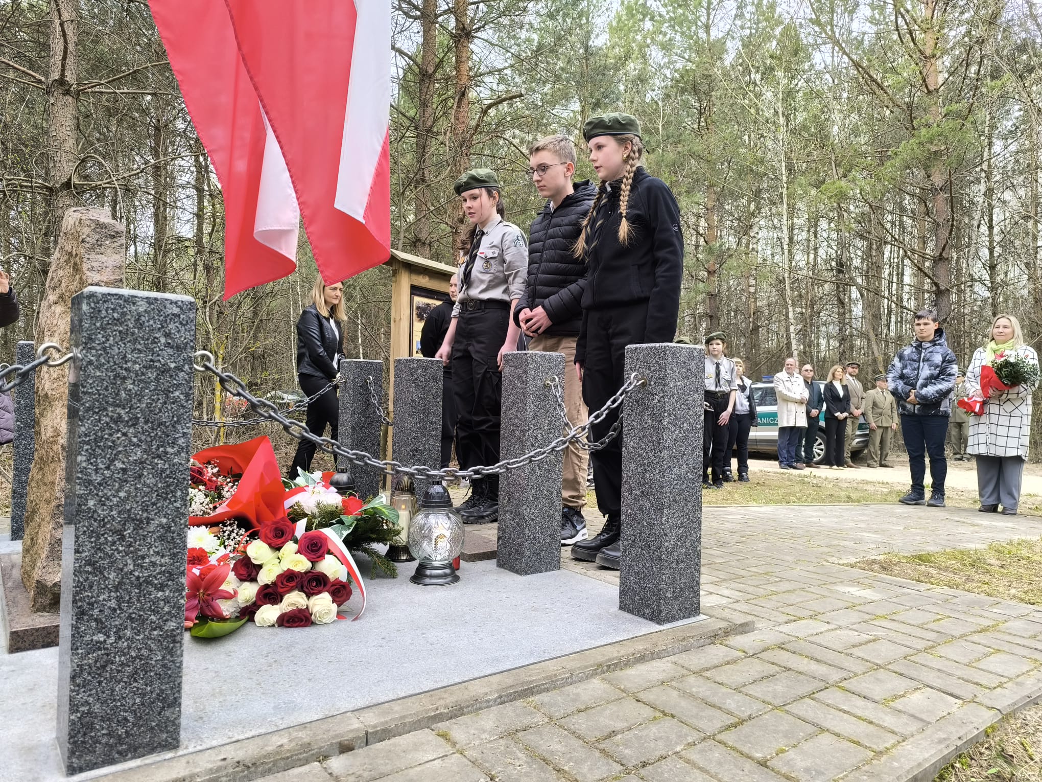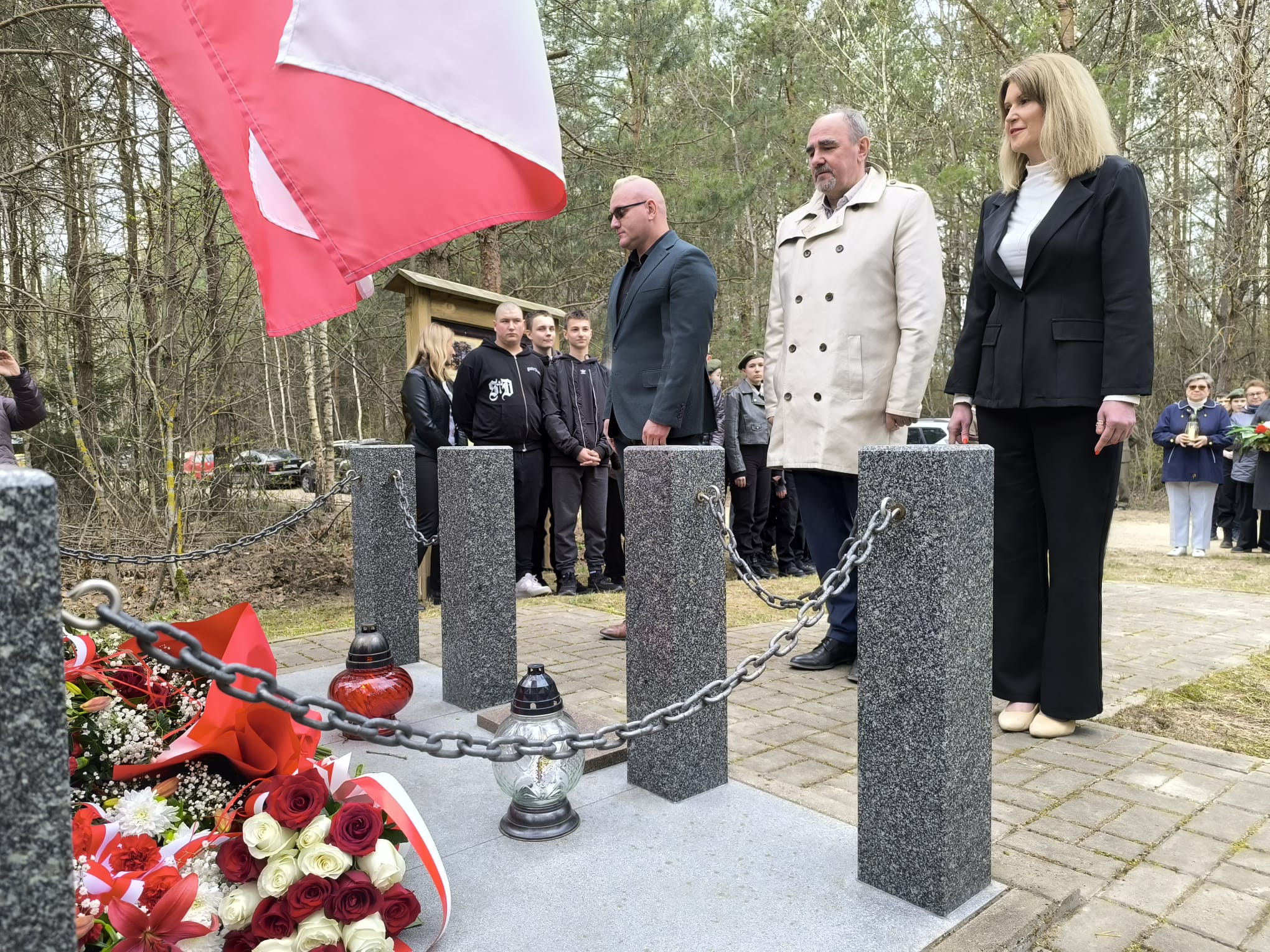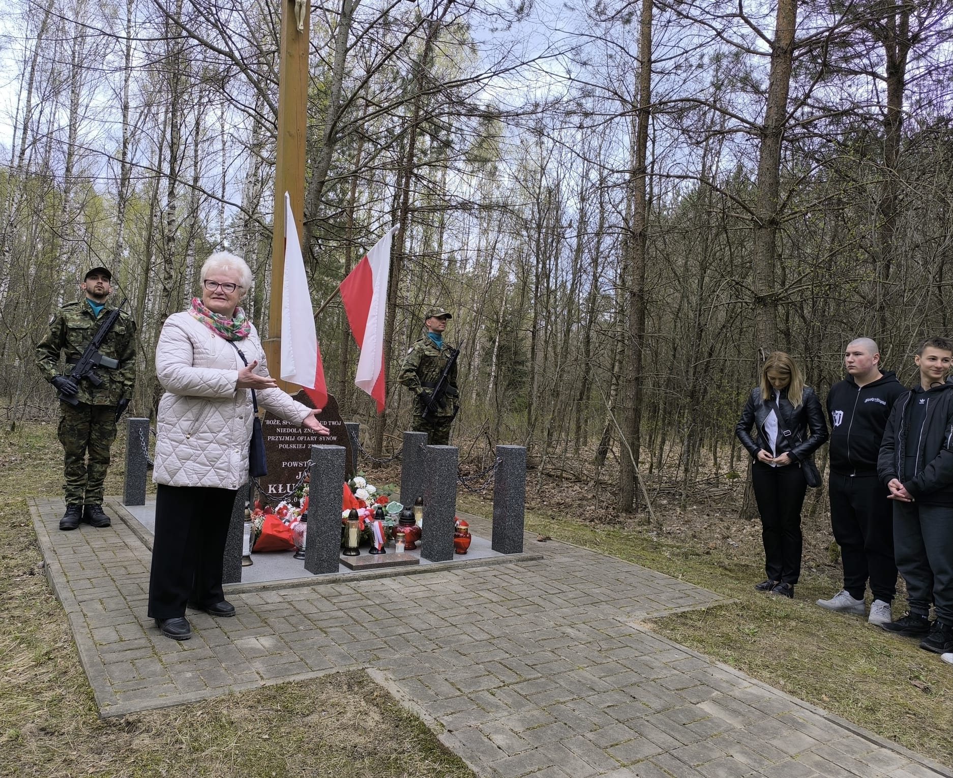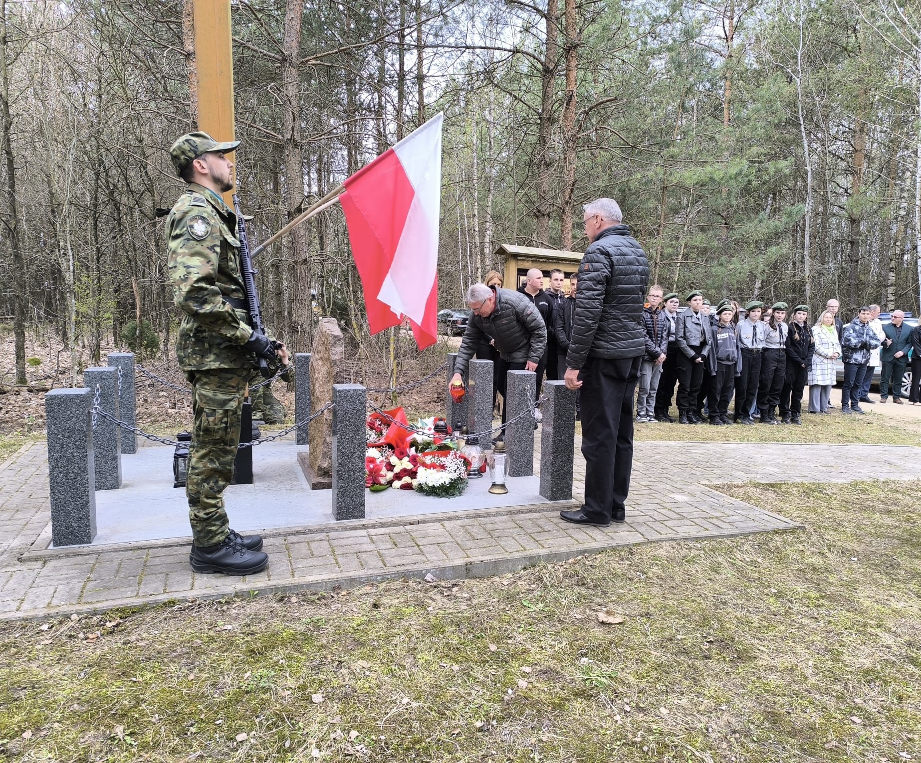 Po nabożeństwie uczestnicy przeszli pod miejsce kaźni Jana Kłusewicza, gdzie odbyła się dalsza część uroczystości patriotycznej. Przy miejscu pamięci delegacje złożyły kwiaty i zapaliły znicze, oddając cześć bohaterowi, którego los na zawsze zapisał się w historii naszej ziemi.