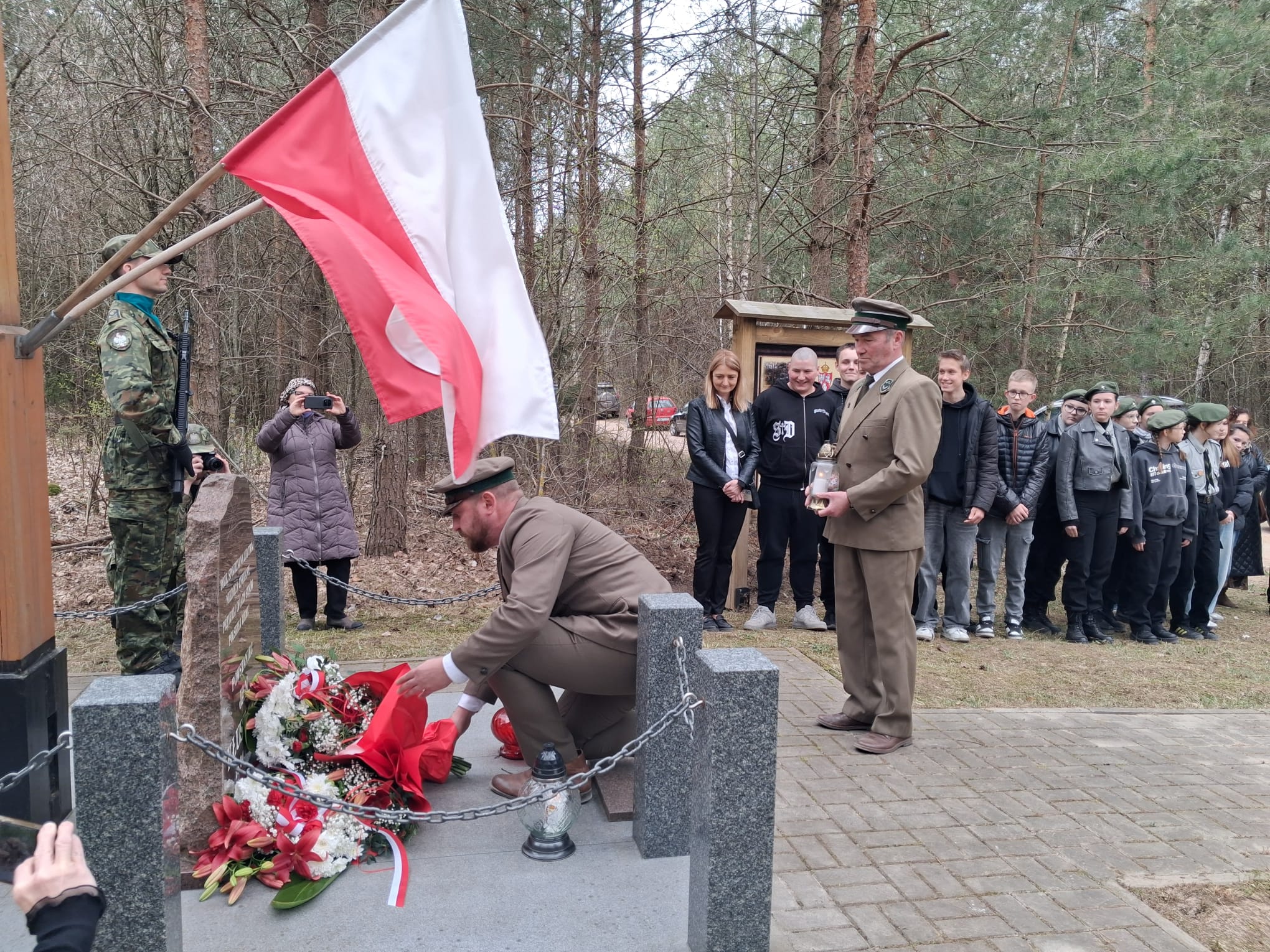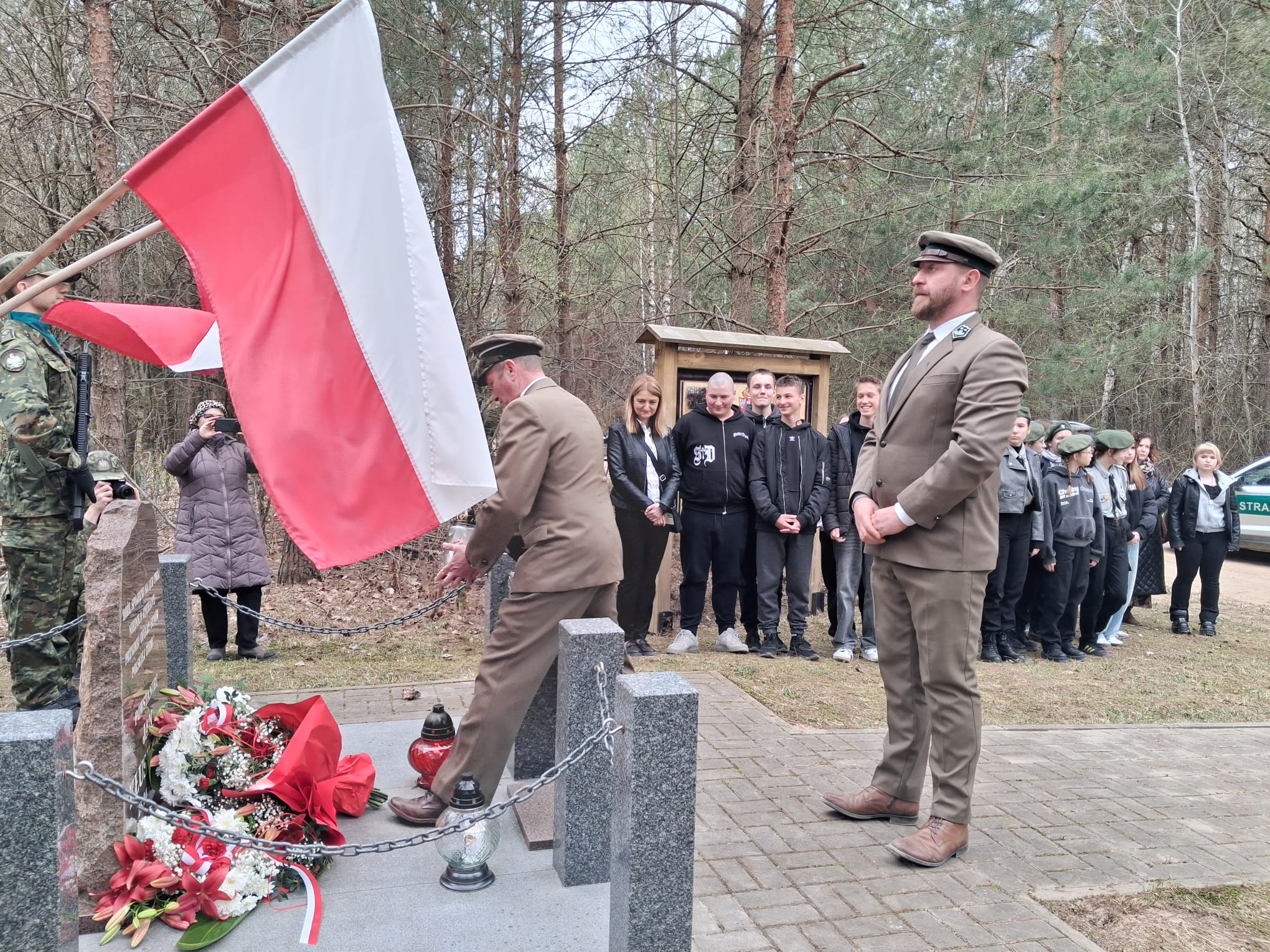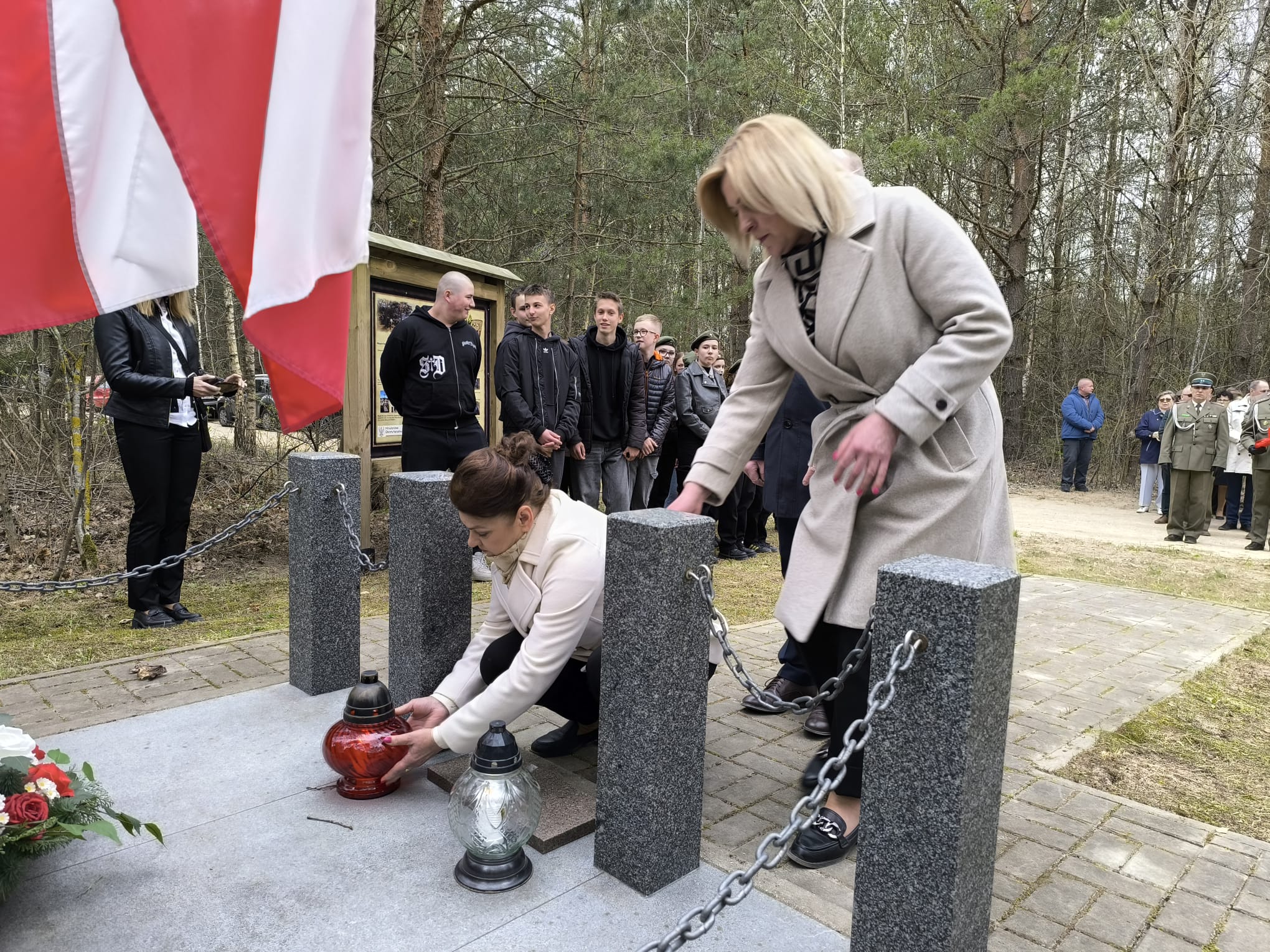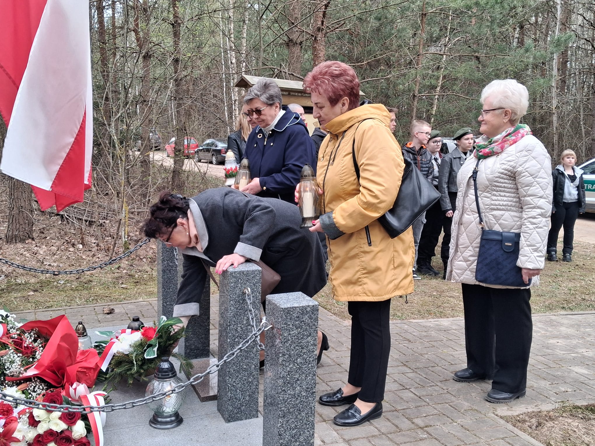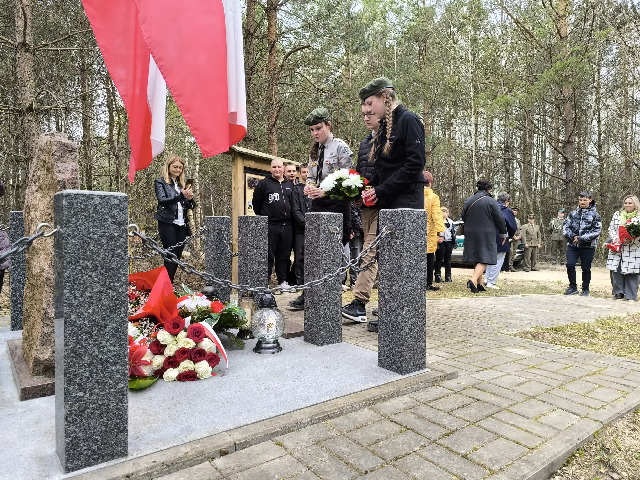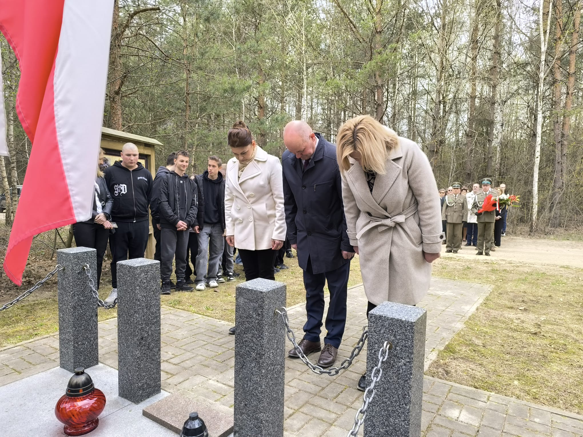 Po nabożeństwie uczestnicy przeszli pod miejsce kaźni Jana Kłusewicza, gdzie odbyła się dalsza część uroczystości patriotycznej. Przy miejscu pamięci delegacje złożyły kwiaty i zapaliły znicze, oddając cześć bohaterowi, którego los na zawsze zapisał się w historii naszej ziemi.