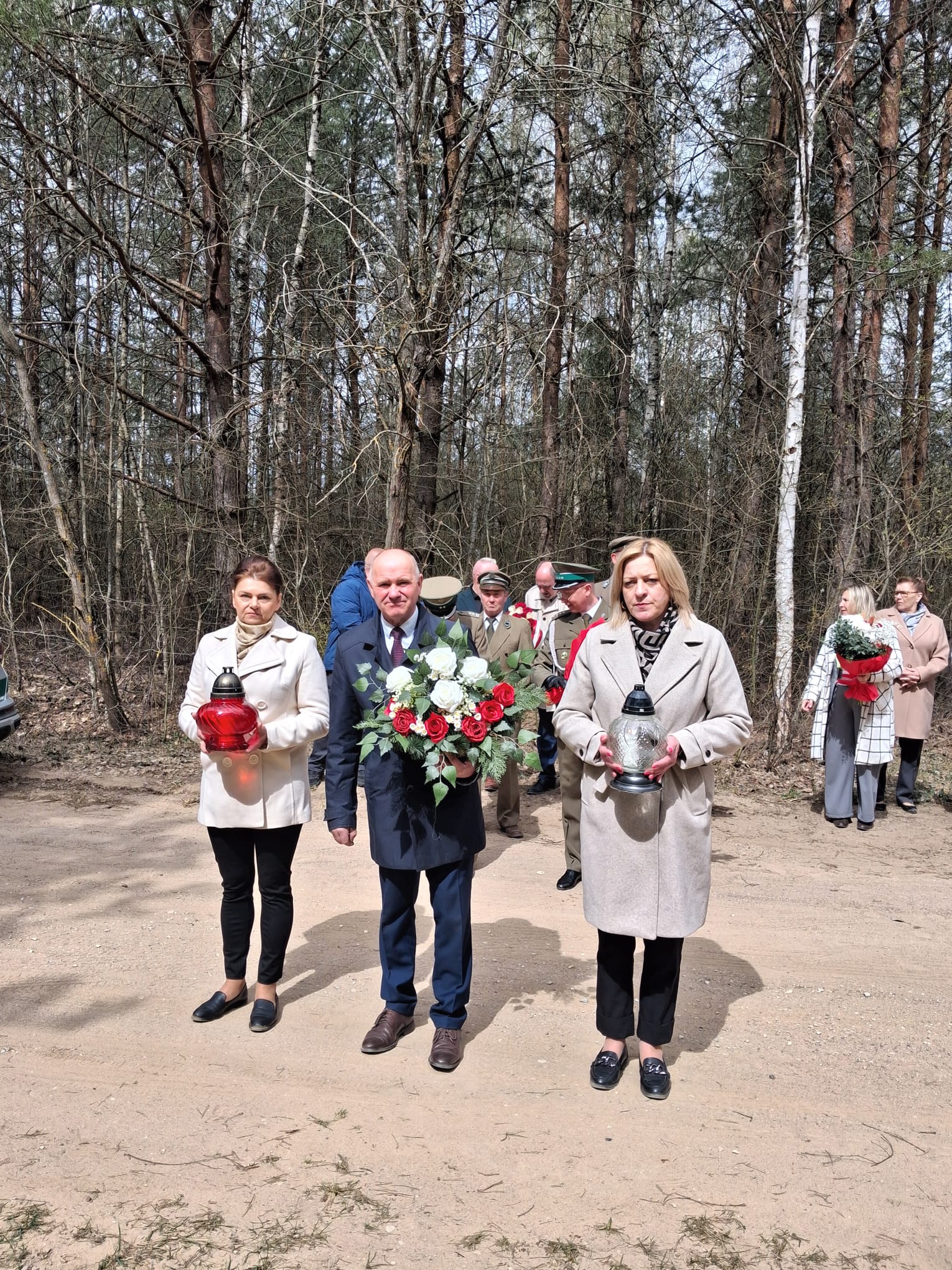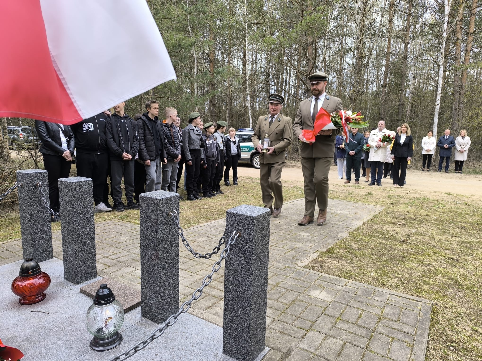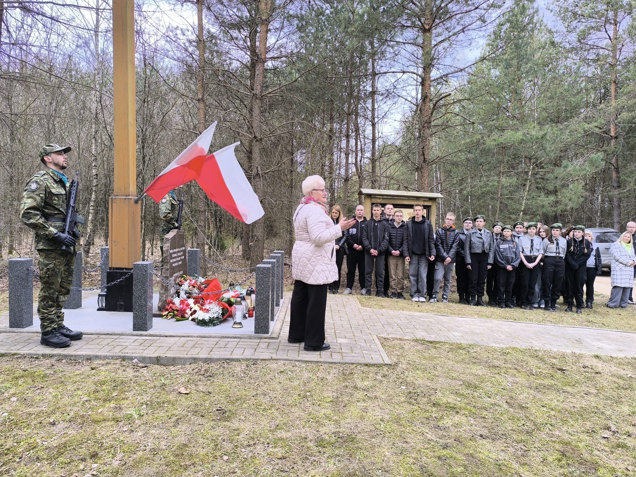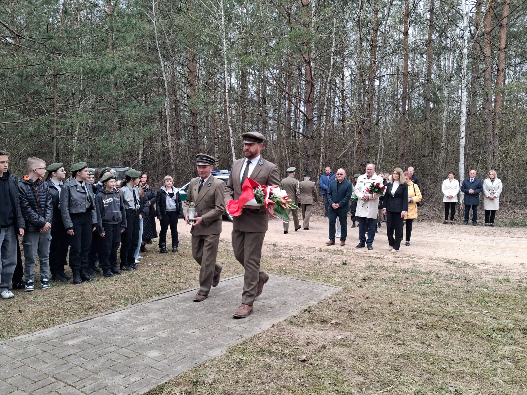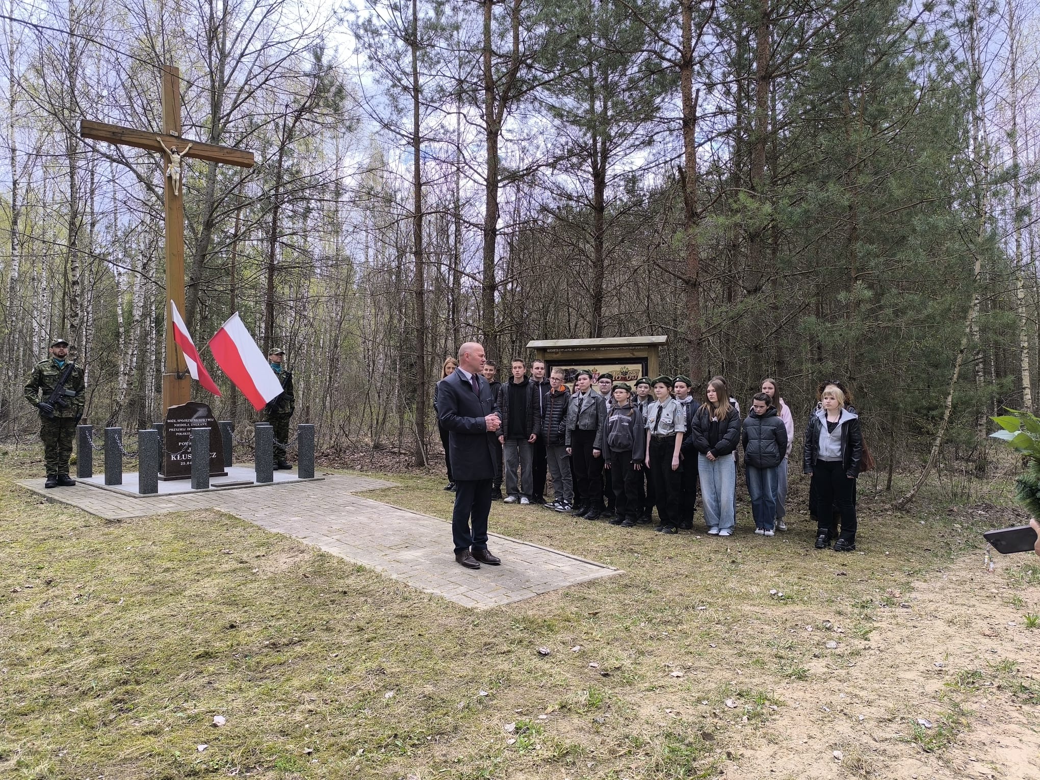 Po nabożeństwie uczestnicy przeszli pod miejsce kaźni Jana Kłusewicza, gdzie odbyła się dalsza część uroczystości patriotycznej. Przy miejscu pamięci delegacje złożyły kwiaty i zapaliły znicze, oddając cześć bohaterowi, którego los na zawsze zapisał się w historii naszej ziemi.