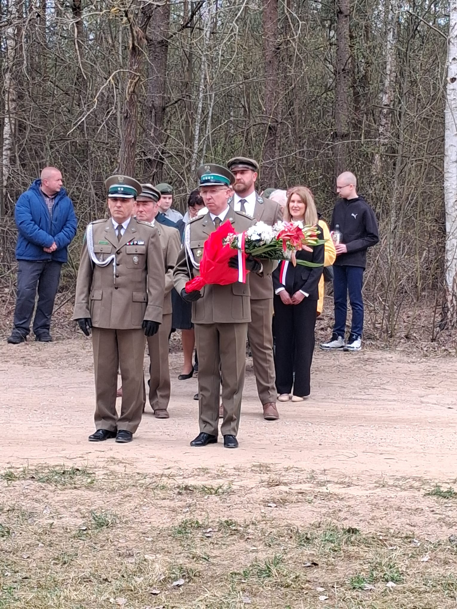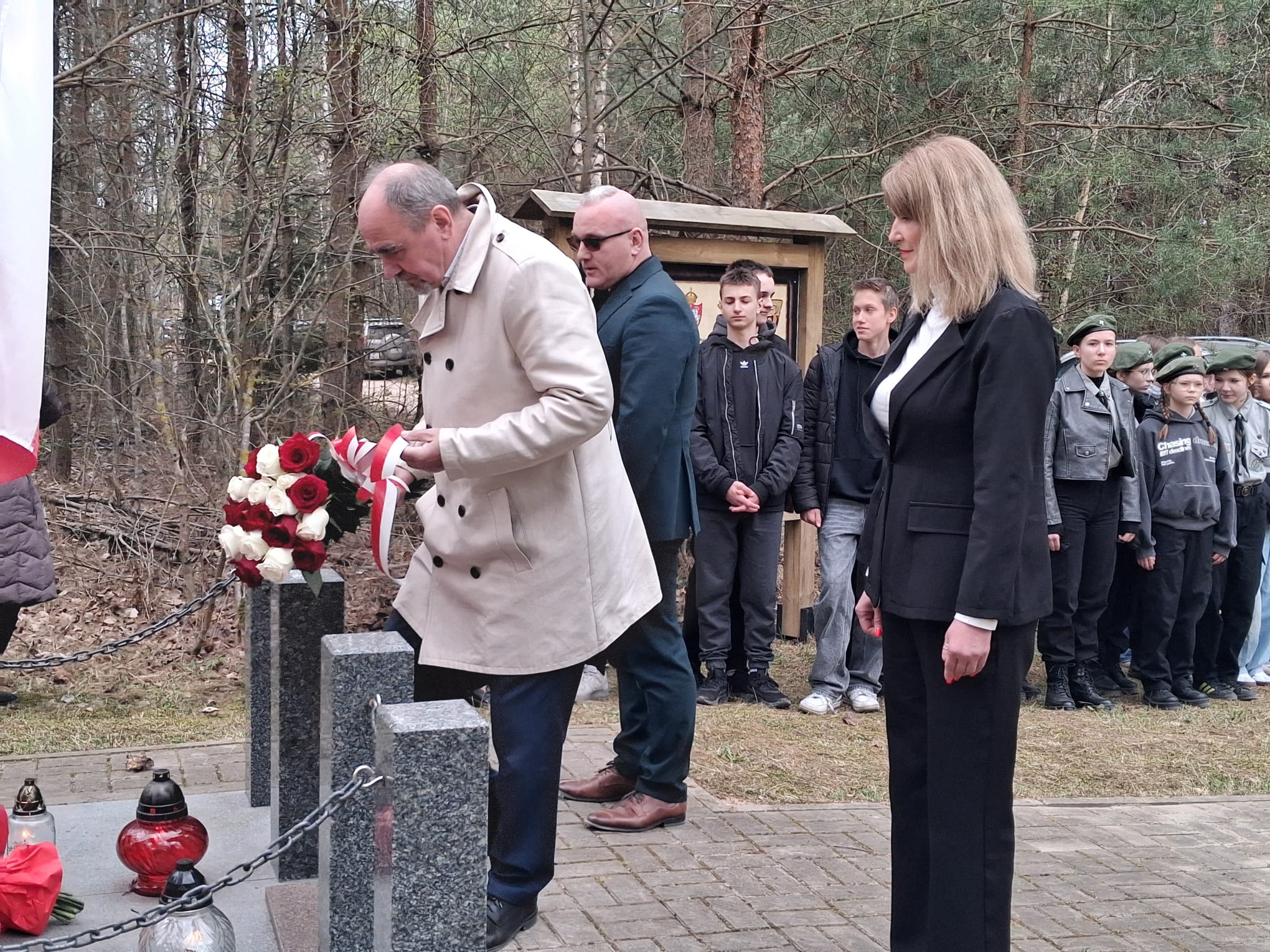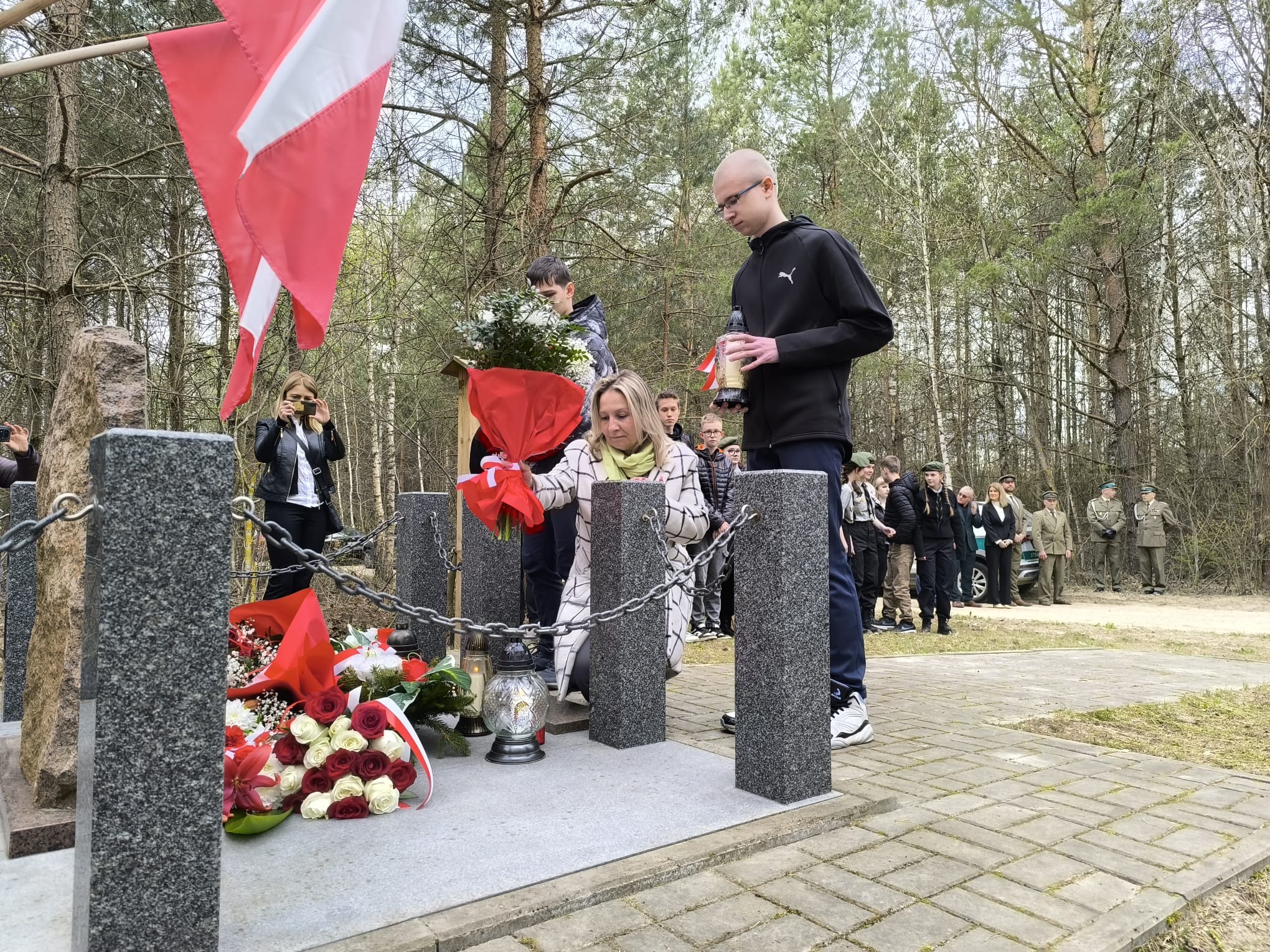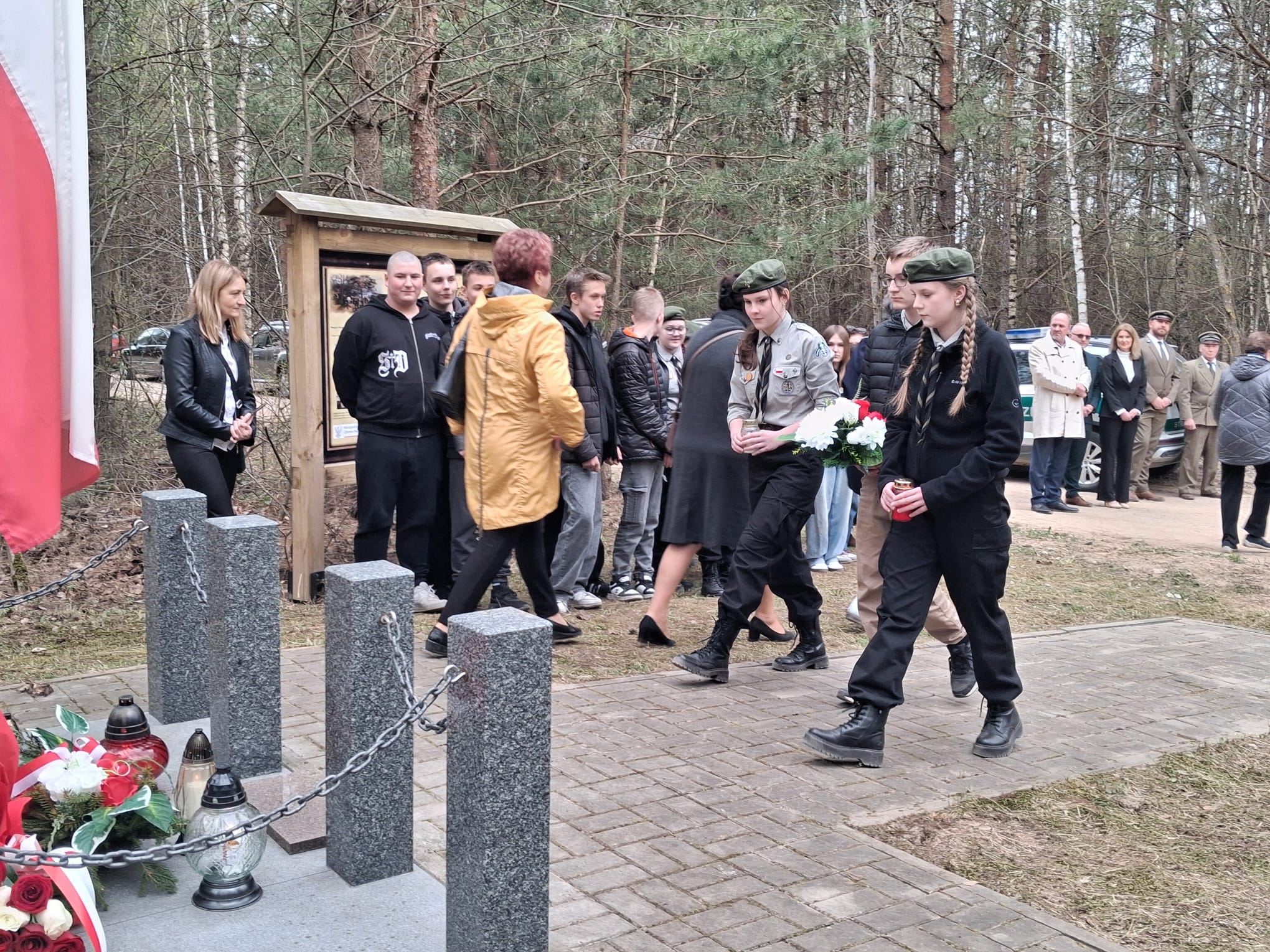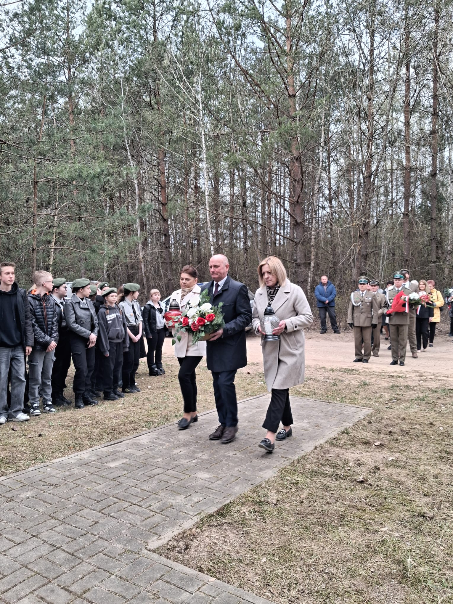 Po nabożeństwie uczestnicy przeszli pod miejsce kaźni Jana Kłusewicza, gdzie odbyła się dalsza część uroczystości patriotycznej. Przy miejscu pamięci delegacje złożyły kwiaty i zapaliły znicze, oddając cześć bohaterowi, którego los na zawsze zapisał się w historii naszej ziemi.