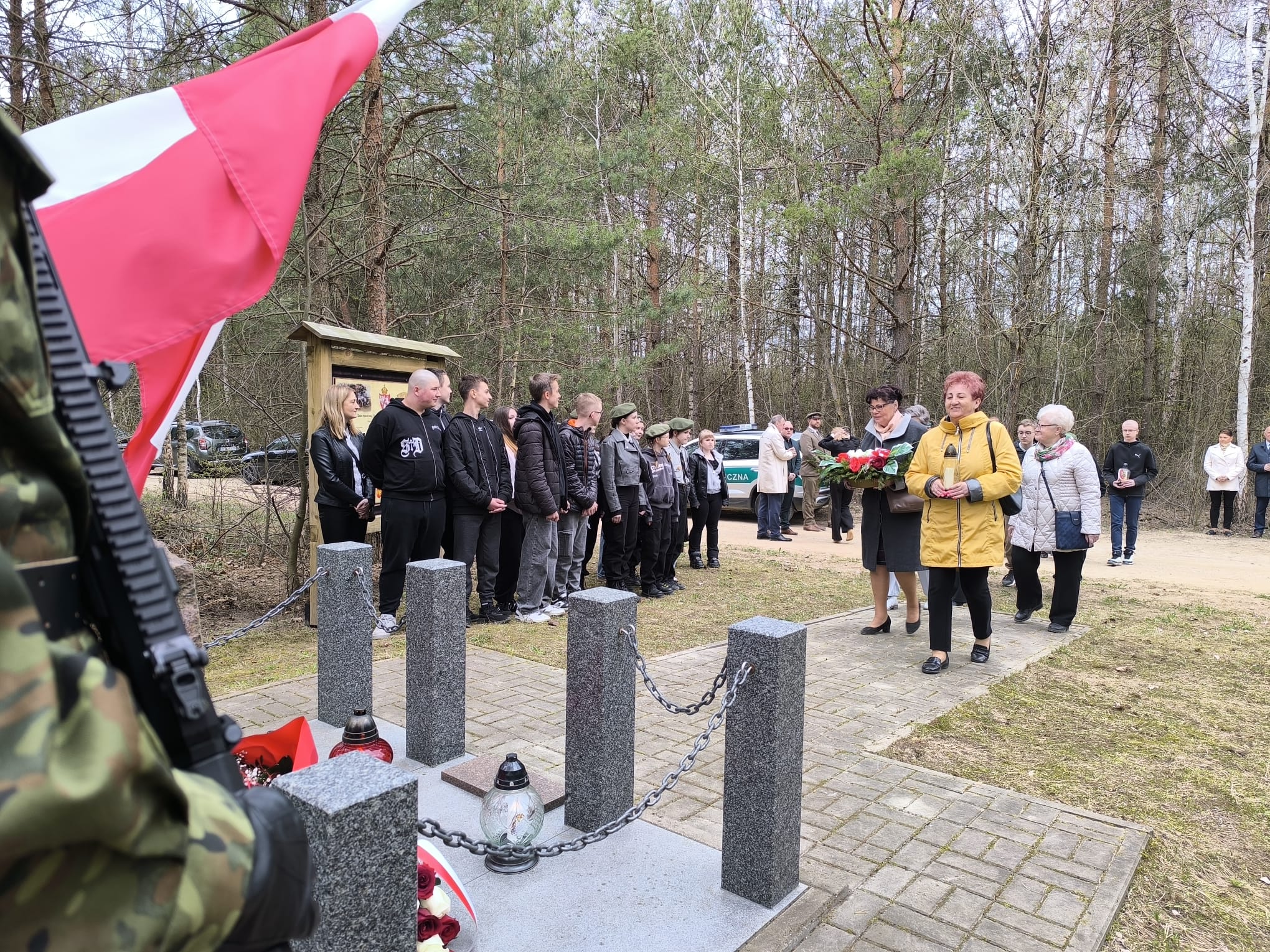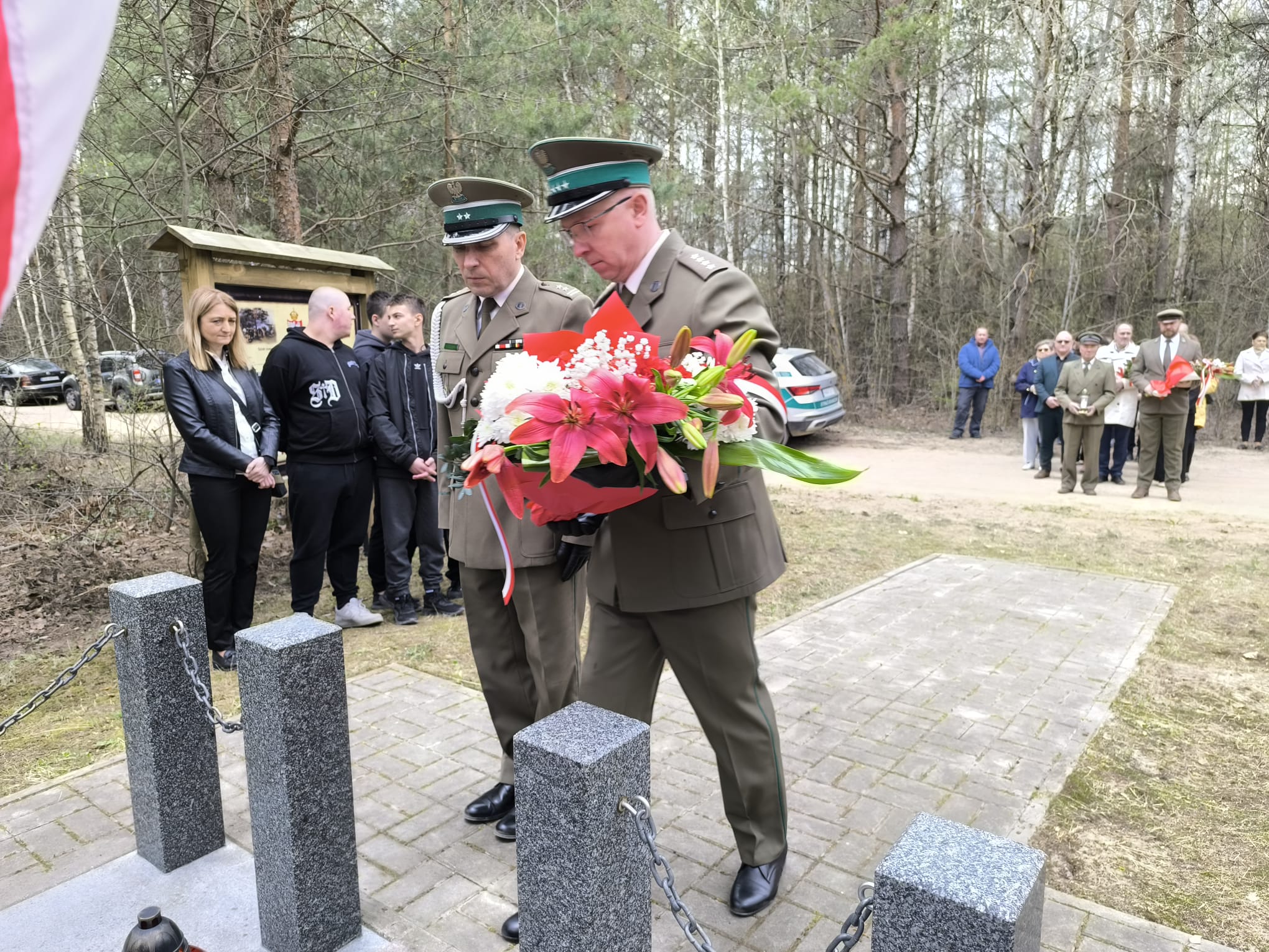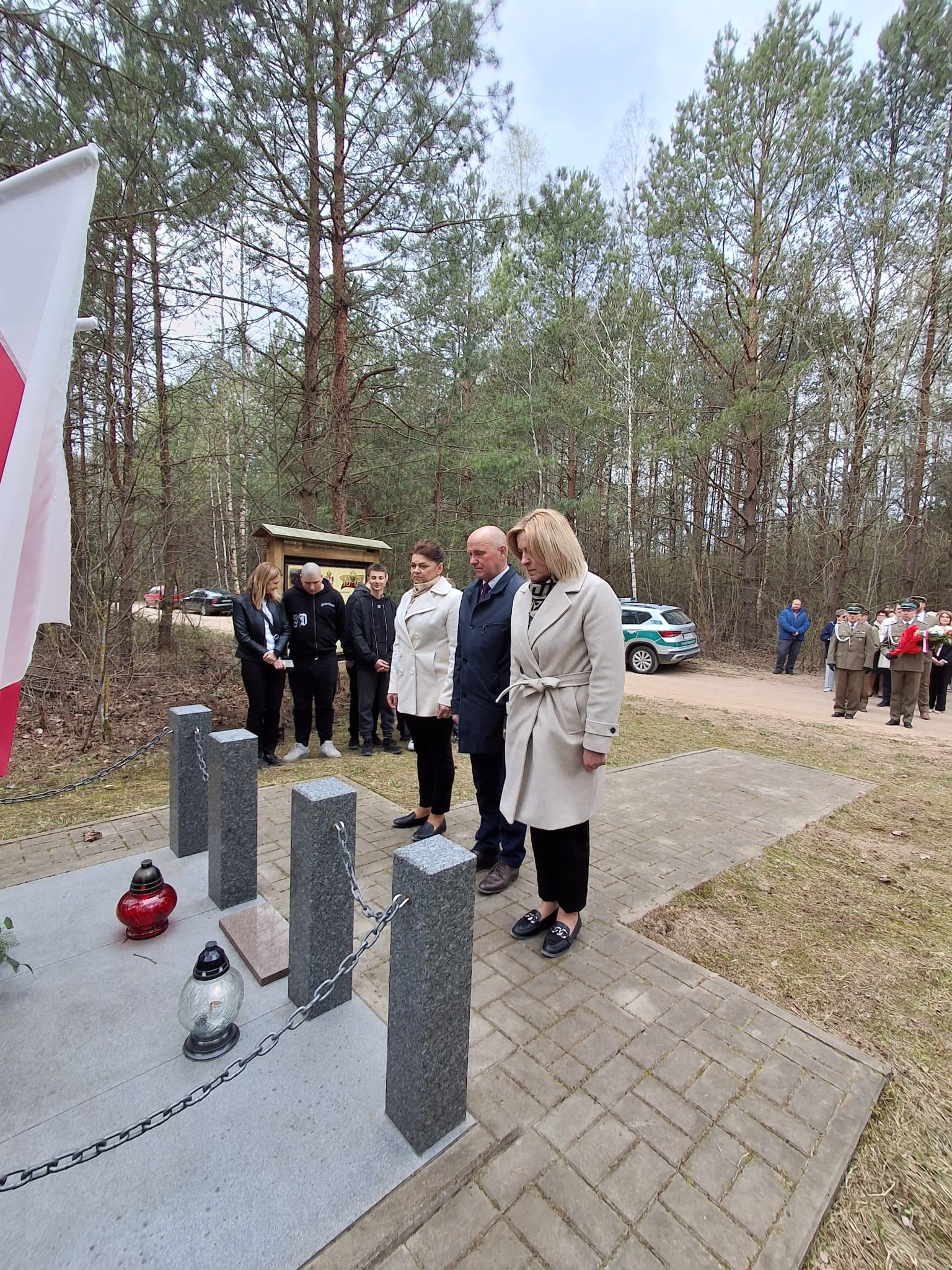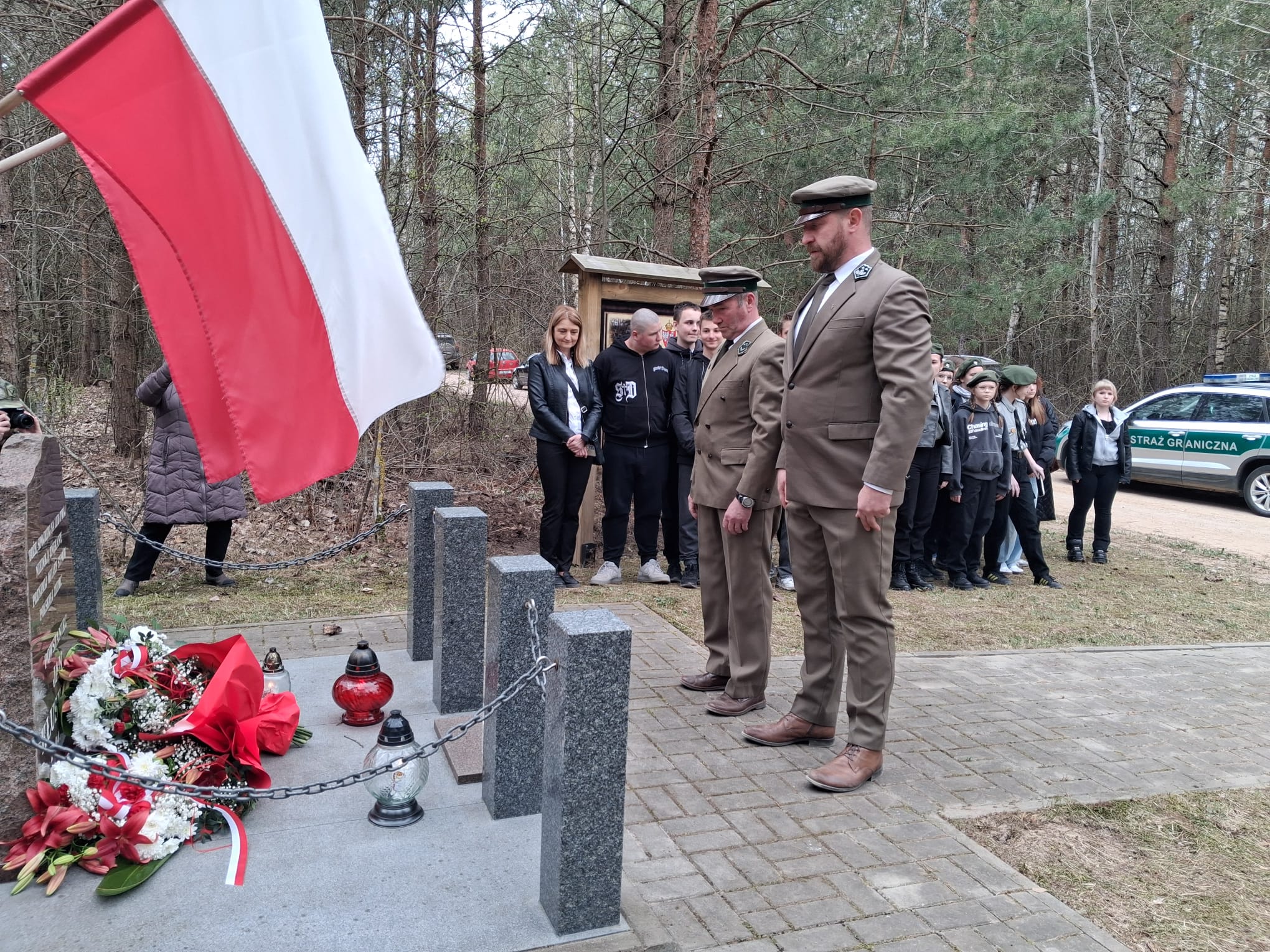 Szczególne podziękowania kierujemy do księży za przygotowanie pięknej oprawy duchowej uroczystości oraz do funkcjonariuszy Straży Granicznej za wartę honorową przy miejscu pamięci narodowej, która podkreśliła rangę tego ważnego dla naszej społeczności wydarzenia a także pań z ZSS za przygotowanie poczęstunku.