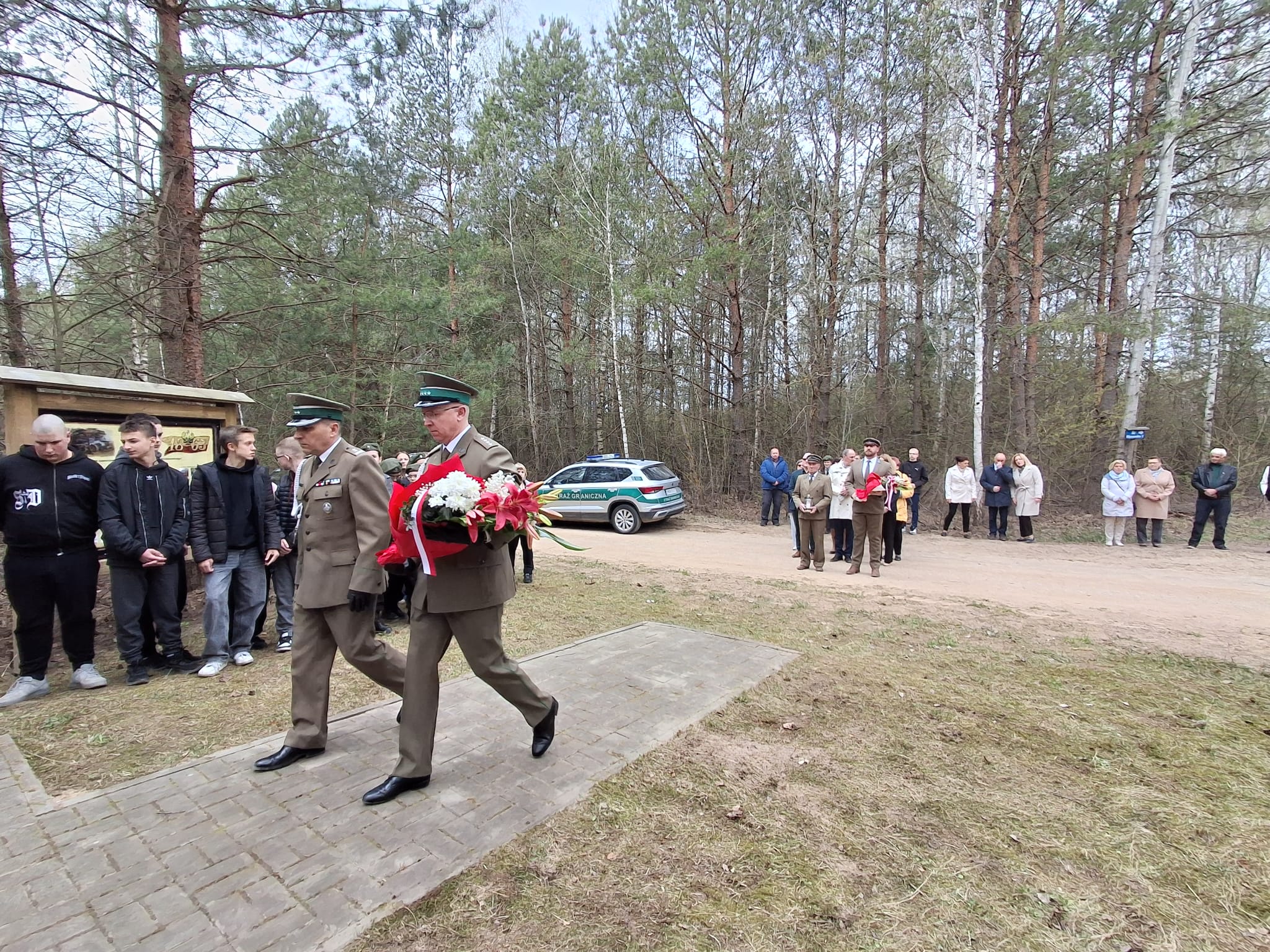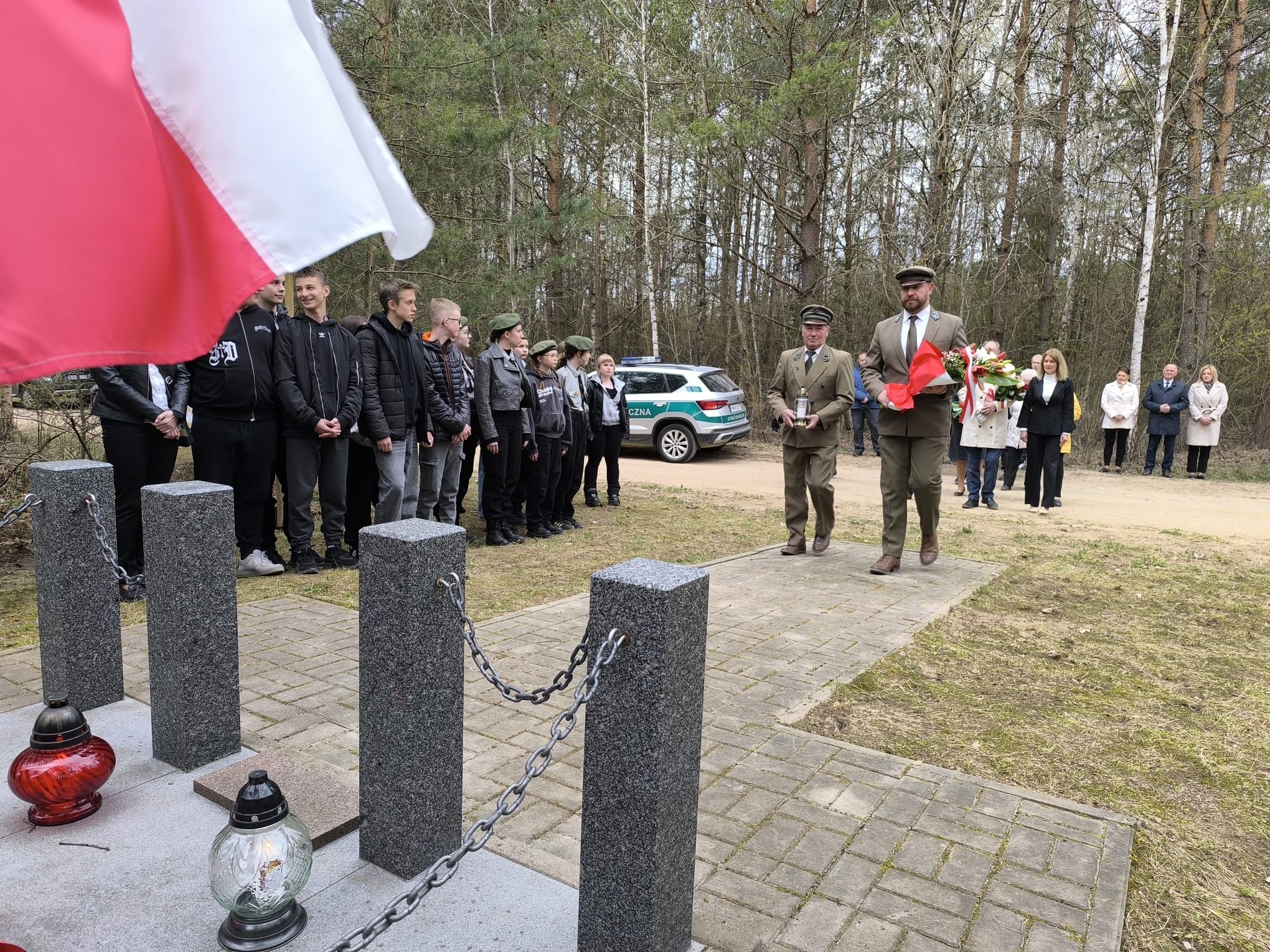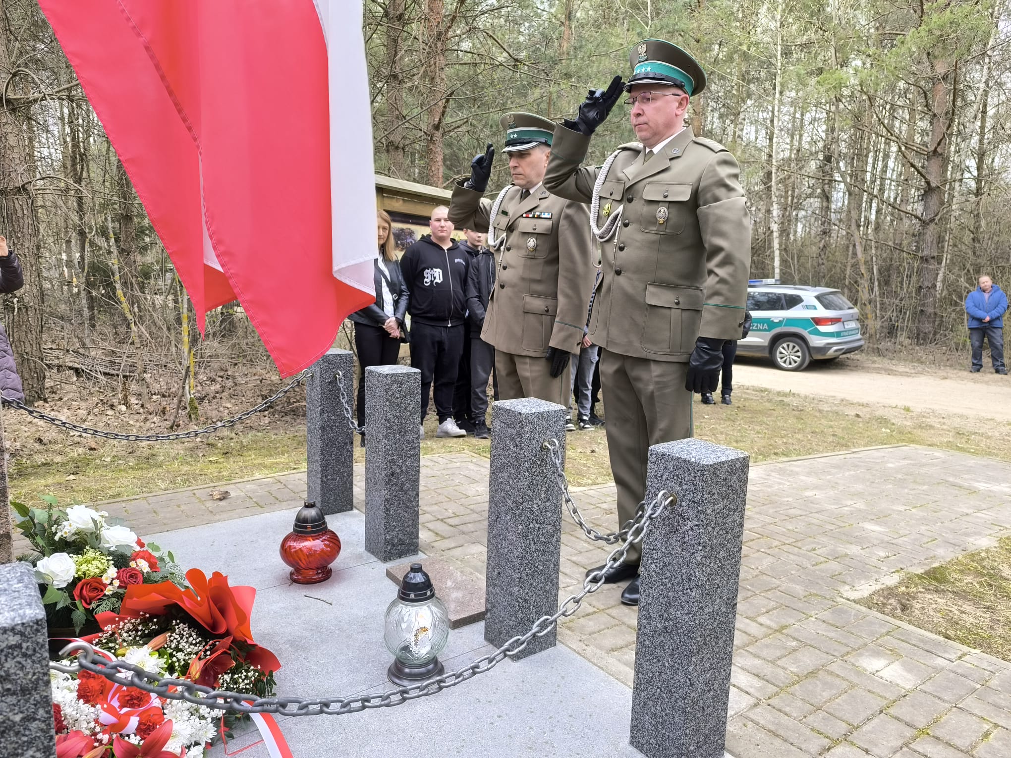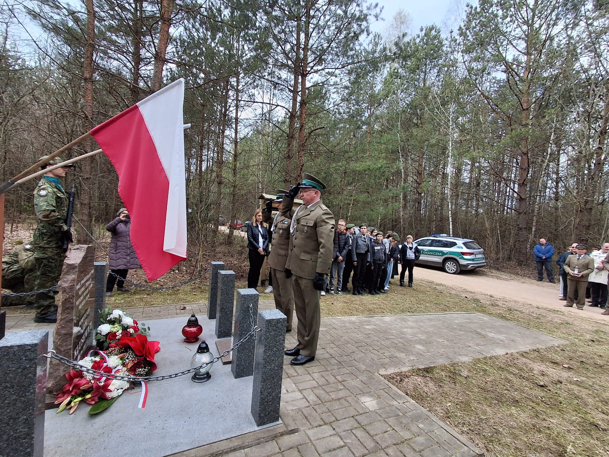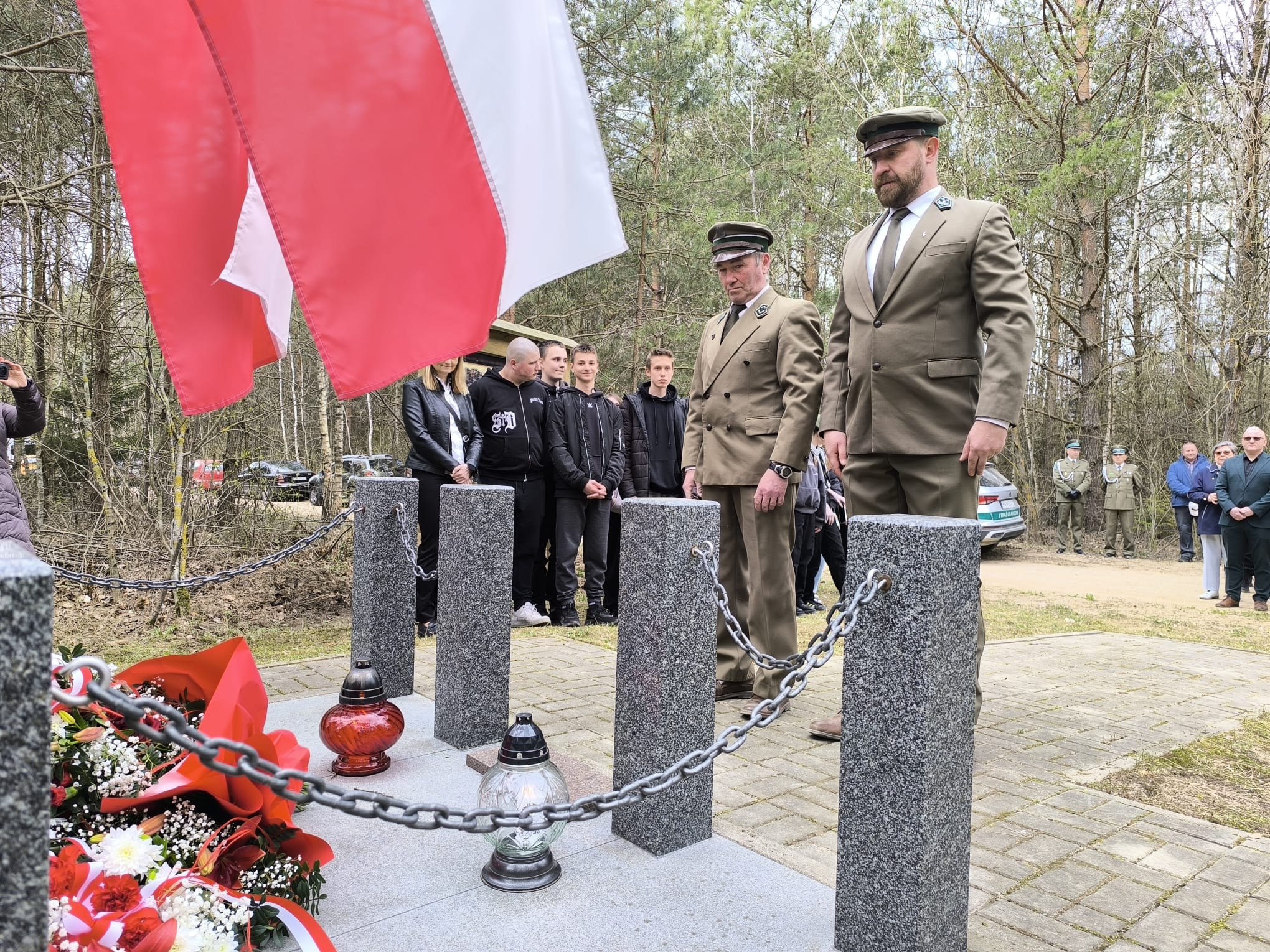 Szczególne podziękowania kierujemy do księży za przygotowanie pięknej oprawy duchowej uroczystości oraz do funkcjonariuszy Straży Granicznej za wartę honorową przy miejscu pamięci narodowej, która podkreśliła rangę tego ważnego dla naszej społeczności wydarzenia a także pań z ZSS za przygotowanie poczęstunku.