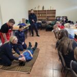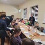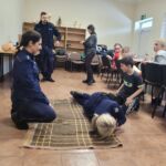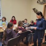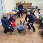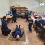 Miłą niespodzianką były odwiedziny funkcjonariuszy z Policji. Dzieci zostały pouczone o bezpieczeństwie na drogach. Dużym zainteresowaniem cieszyło się udzielanie pierwszej pomocy. Każde z dzieci mogło spróbować przeprowadzić resuscytację na fantomie. Funkcjonariusze obdarowali dzieci drobnymi gadżetami.