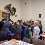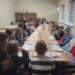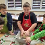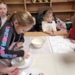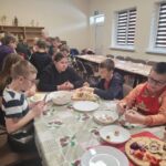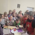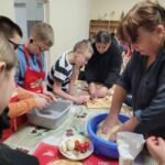 Dzisiejsze przedpołudnie dzieci spędziły w kuchni. Pod kierunkiem grupy kulinarnej Fajerki z KGW Krynkowianie dzieci przygotowały i upiekły pizzę. Każde z dzieci zrobiło swoją pizzę, dużo śmiechu było przy tym. A jednocześnie przekazana wiedza od pań z KGW została użyta przy przygotowaniu ciasta i dodatków.