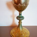 Pojutrze święto w kościele katolickim – Boże Ciało. Podczas szukania elementów do dekoracji ołtarzyków, natrafiono na takie “znalezisko”. Kielich, u którego podstawy znajduje się wygrawerowany napis: “Ofiara B. Harasimowicza do Kość. Kryńskiego 1916”. Częściowo pokryty patyną, widać, że kielich pełnił swoją mszalną rolę przez długie lata, bowiem złocenie na “nóżce” zostało starte od częstego używania.