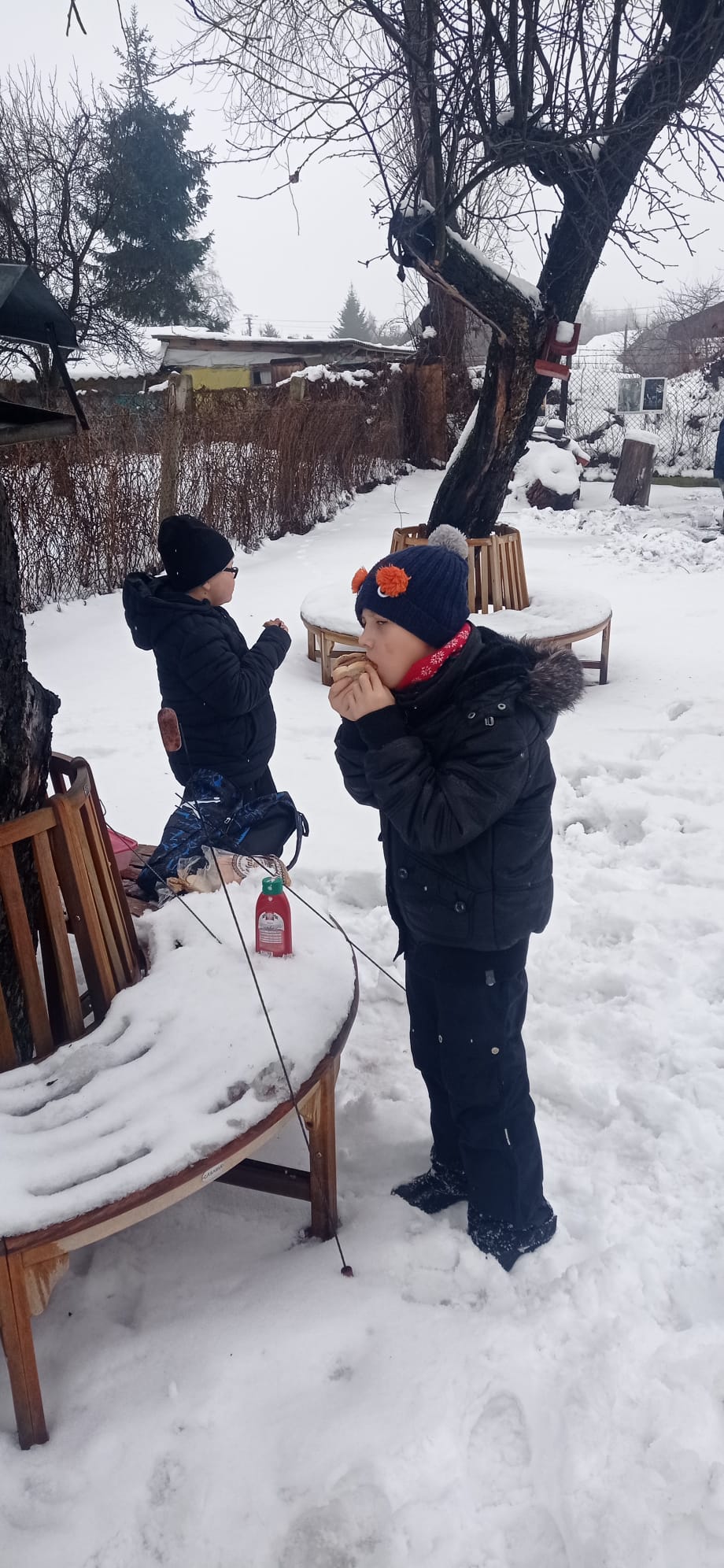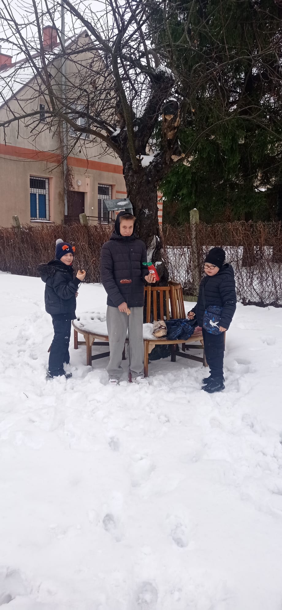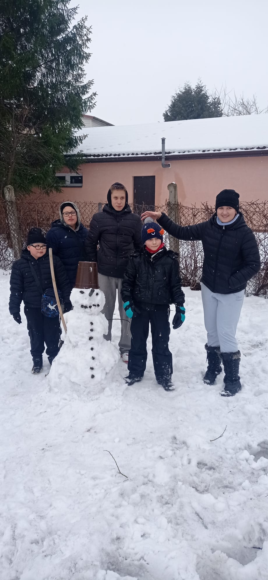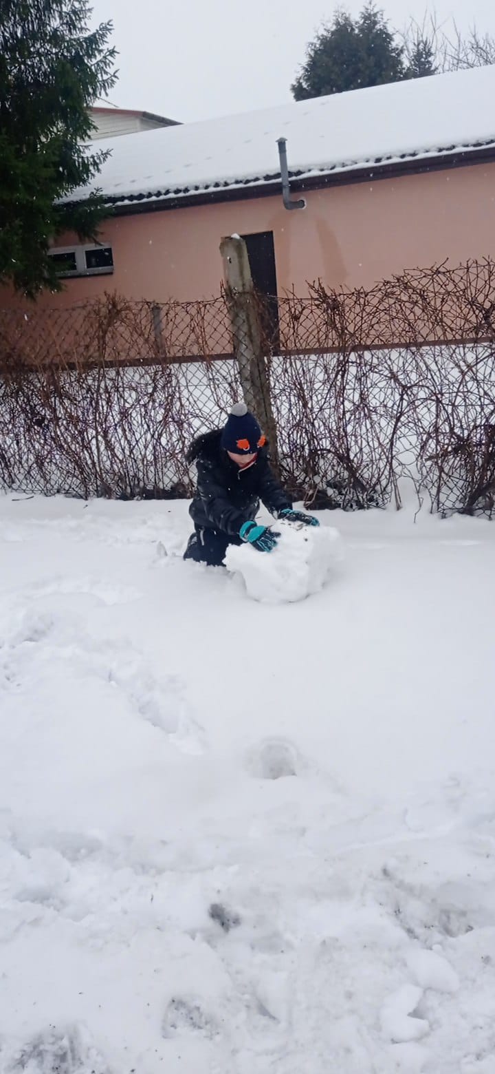 Nie zabrakło też zimowej zabawy – dzieci wykorzystały ogromne ilości śniegu zalegające na naszym podwórku i wspólnie ulepiły bałwana ⛄