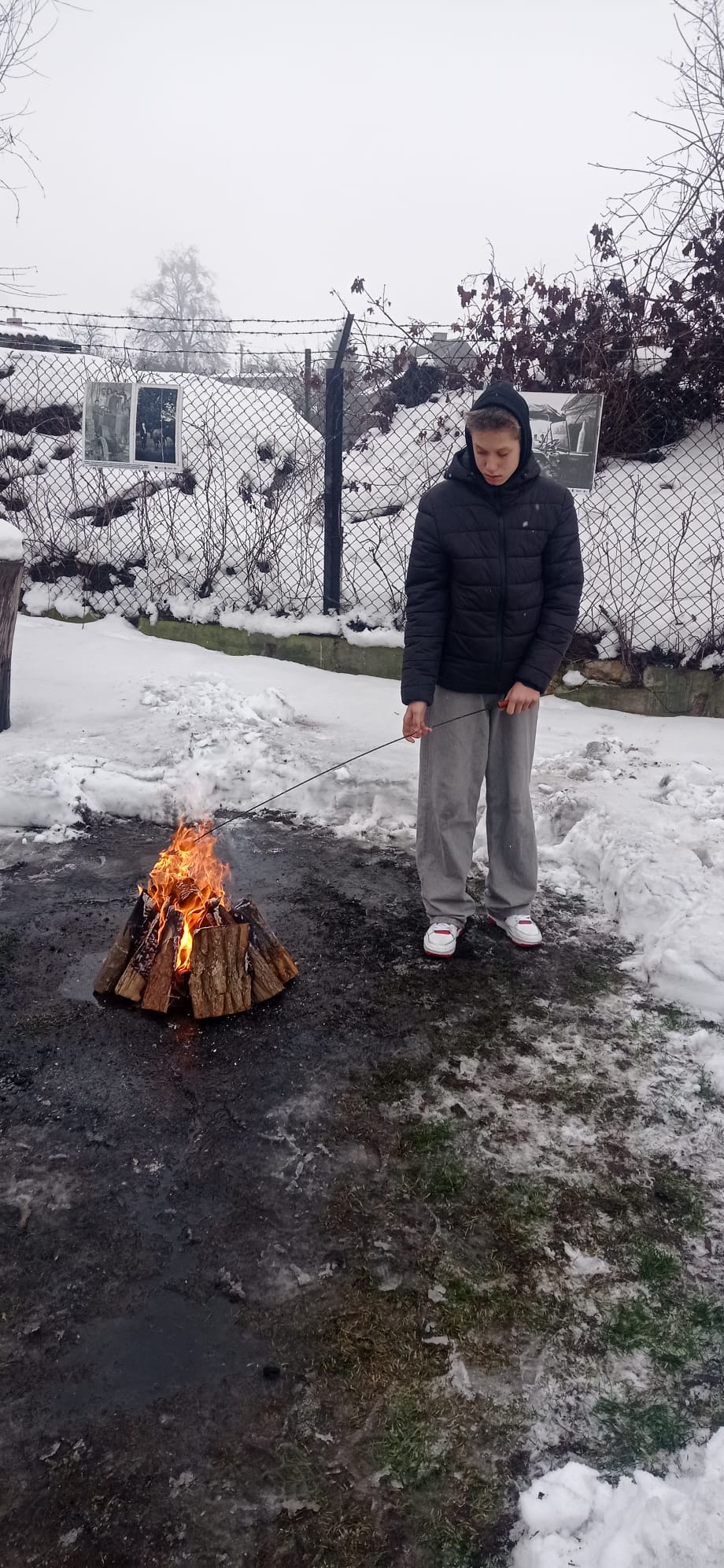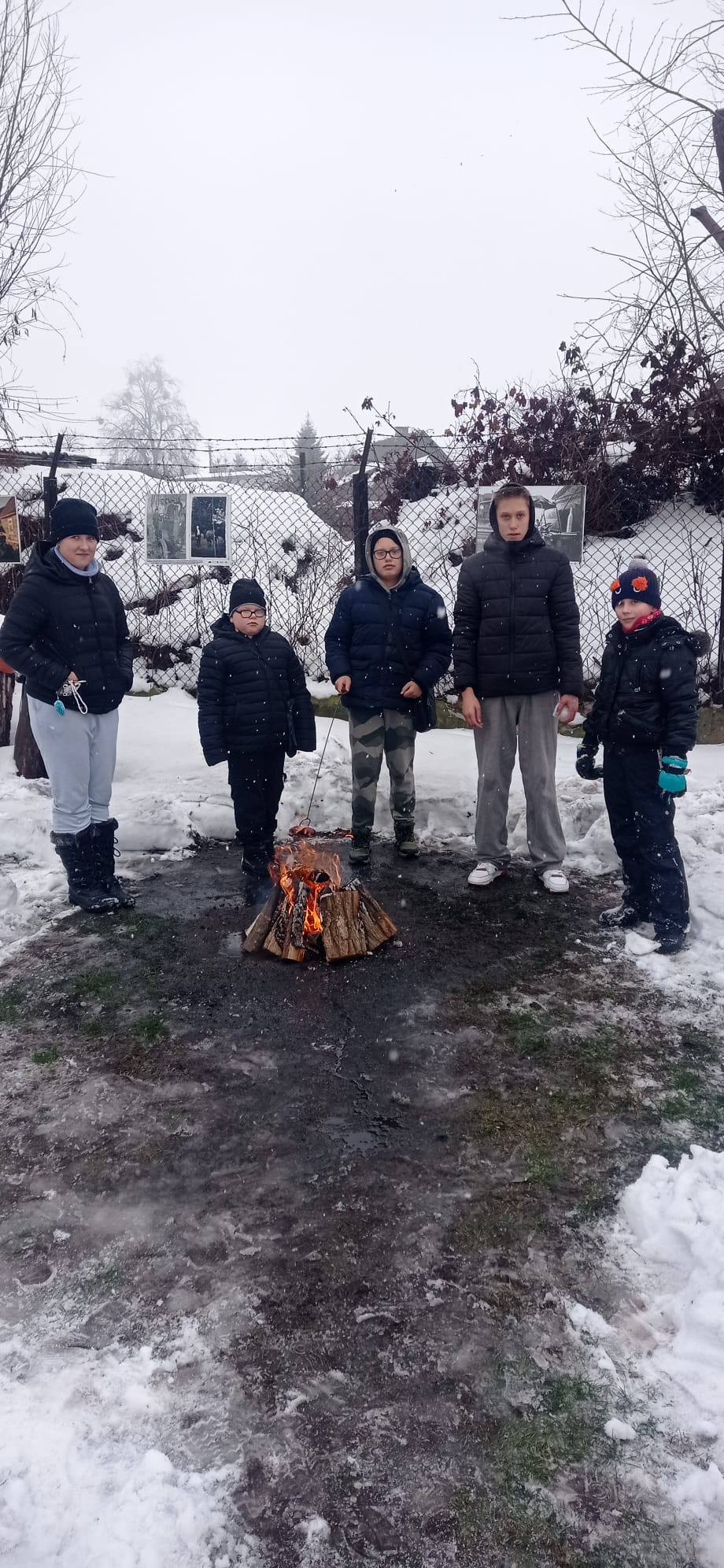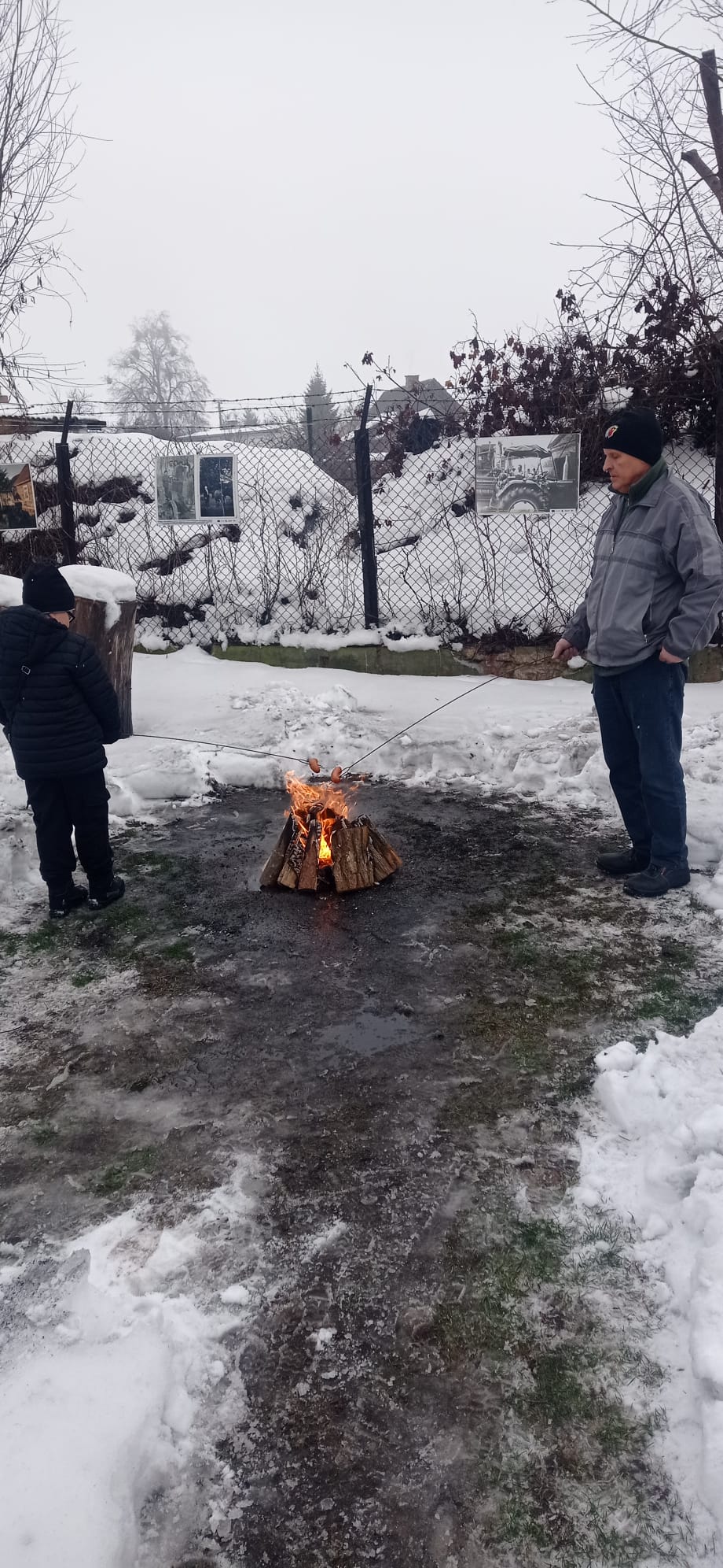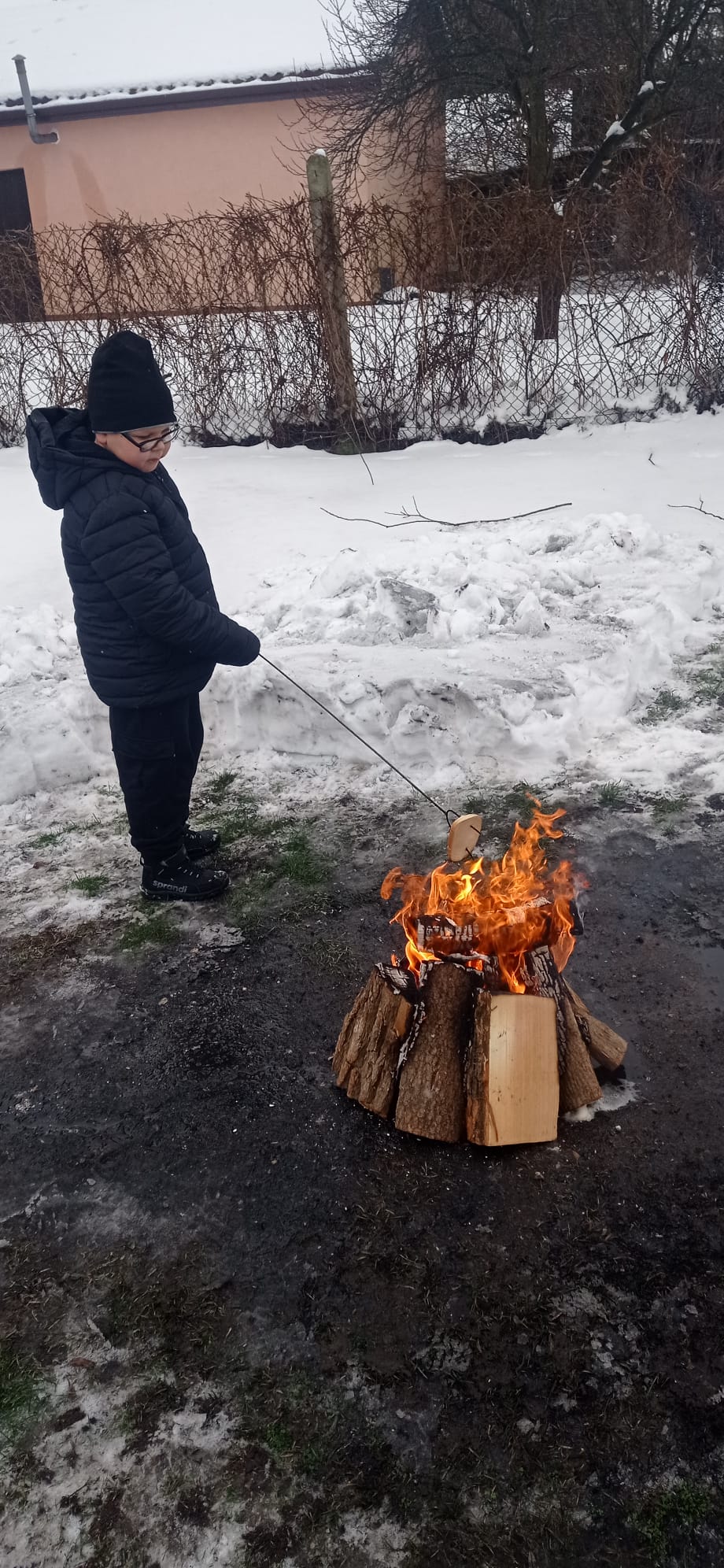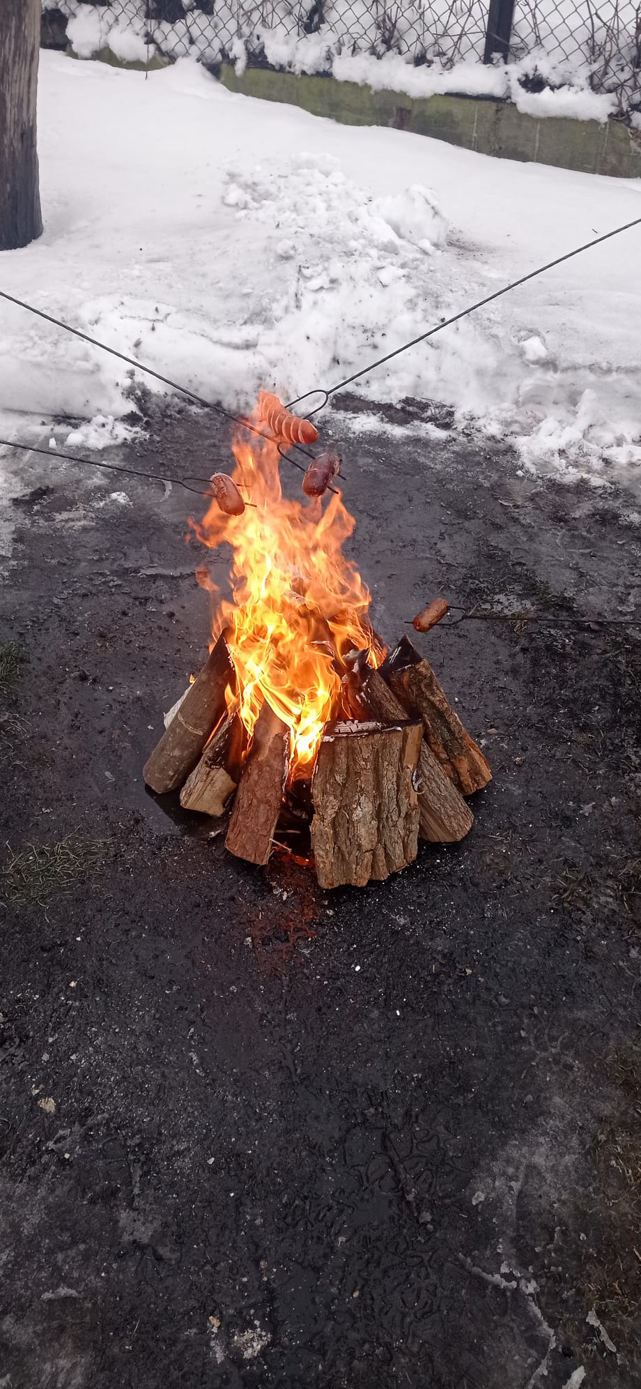 Mimo niesprzyjającej pogody i śliskiej, niebezpiecznej nawierzchni dziś przy GOK w Krynkach udało się zorganizować ognisko z pieczeniem kiełbasek 🔥❄️