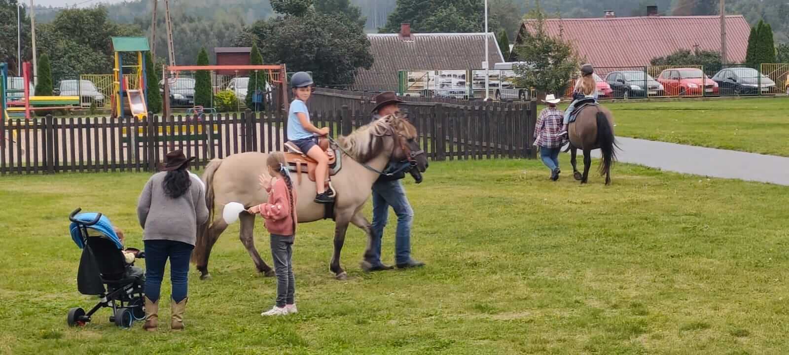 Nie zabrakło również atrakcji dla najmłodszych – dzieci mogły korzystać z dmuchańca a także przeżyć niezapomnianą przygodę podczas przejażdżek konnych, przygotowanych przez Turystykę Konną „Czarny Koń” pani Izy Subieta z Góran.