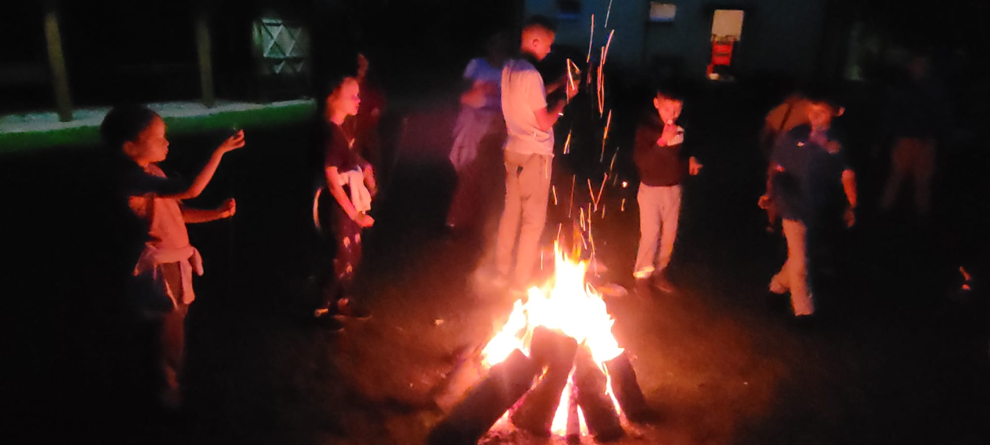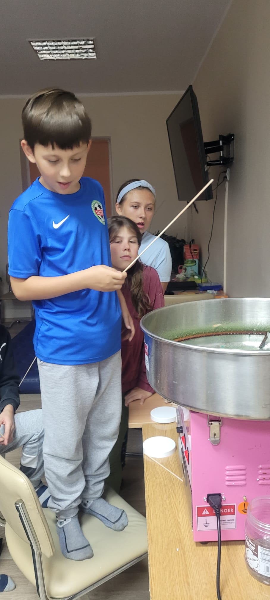 Nocowanie w GOK-u było pełne atrakcji – ognisko, zabawy ruchowe, gry planszowe, wata cukrowa i oczywiście długie nocne pogaduchy .