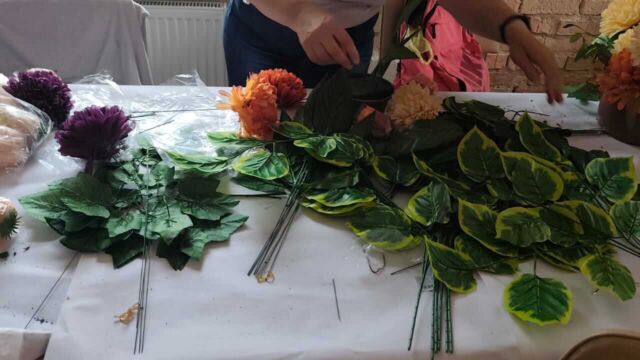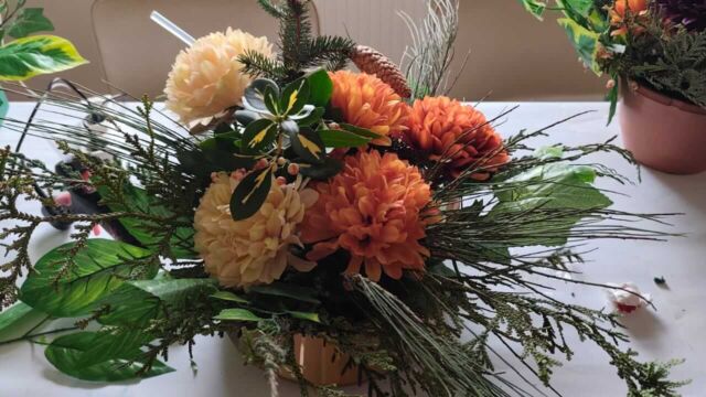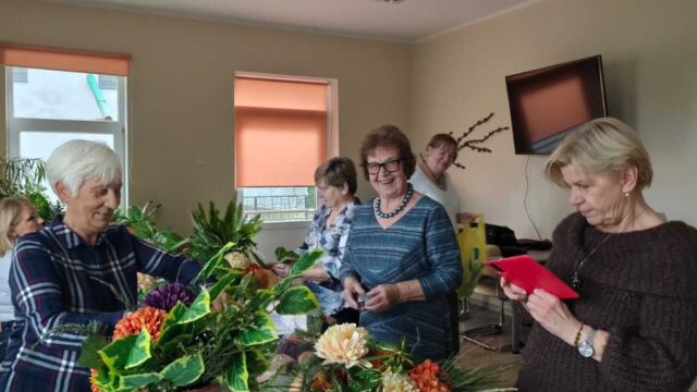 Uczestniczki przyniosły własne kwiaty i dodatki, dzięki czemu każda kompozycja miała indywidualny charakter. Panie korzystały jedynie z podpowiedzi i wskazówek instruktora, który służył pomocą w kwestiach technicznych oraz doborze kolorów. Efekty pracy okazały się znakomite – powstały piękne, starannie wykonane wiązanki, które będą prawdziwą ozdobą grobów bliskich w zbliżającym się dniu Wszystkich Świętych.