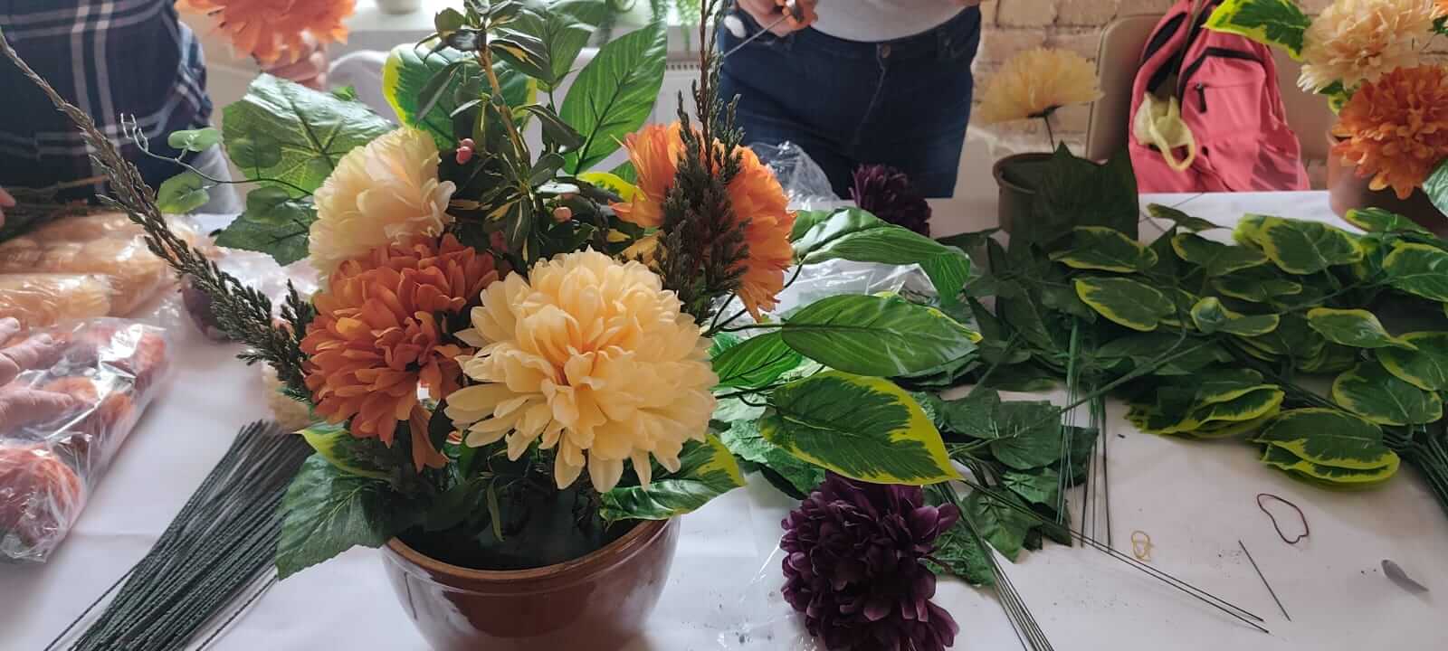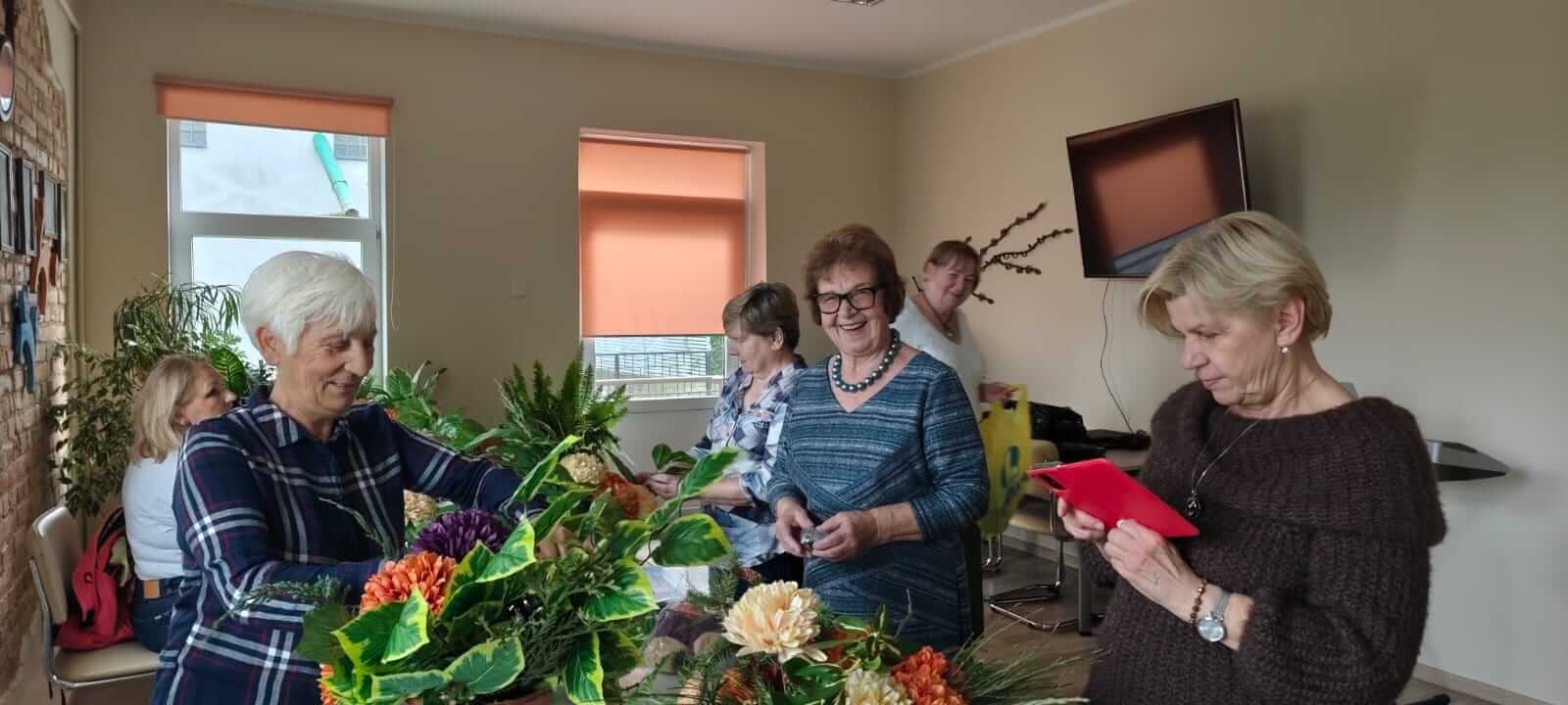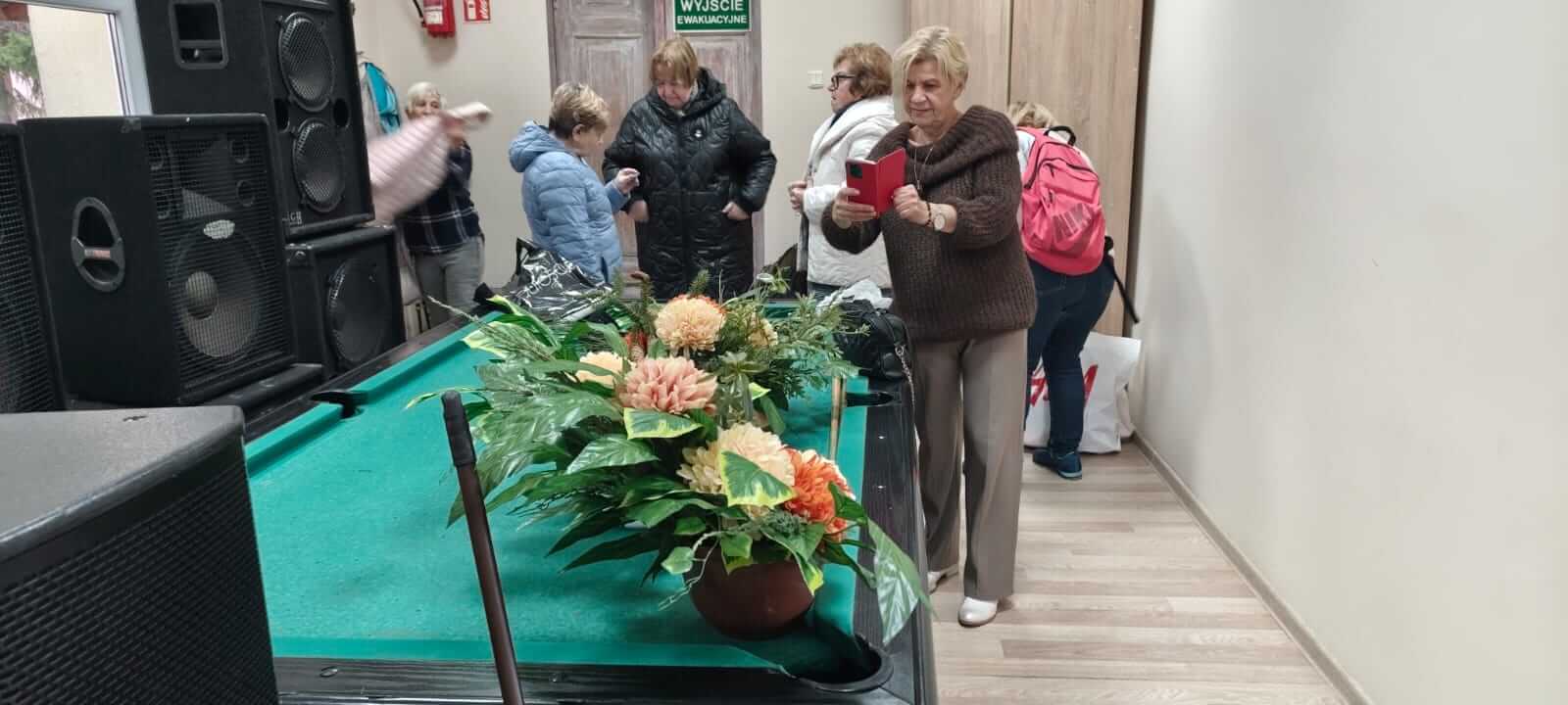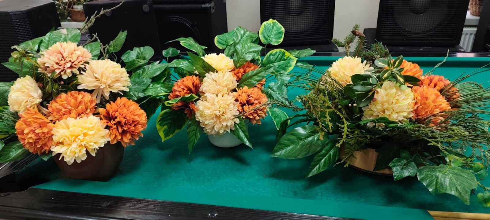 Uczestniczki przyniosły własne kwiaty i dodatki, dzięki czemu każda kompozycja miała indywidualny charakter. Panie korzystały jedynie z podpowiedzi i wskazówek instruktora, który służył pomocą w kwestiach technicznych oraz doborze kolorów. Efekty pracy okazały się znakomite – powstały piękne, starannie wykonane wiązanki, które będą prawdziwą ozdobą grobów bliskich w zbliżającym się dniu Wszystkich Świętych.
