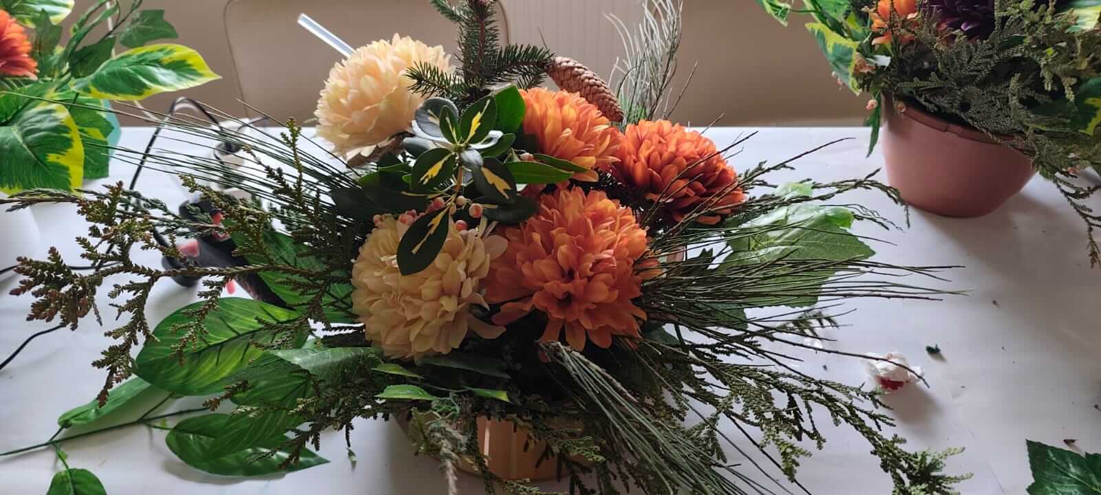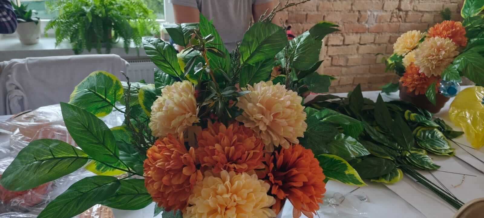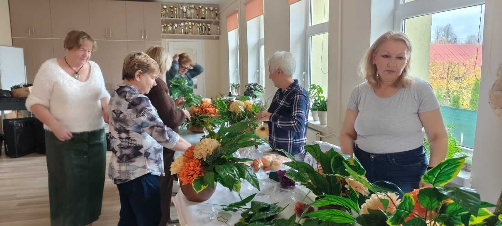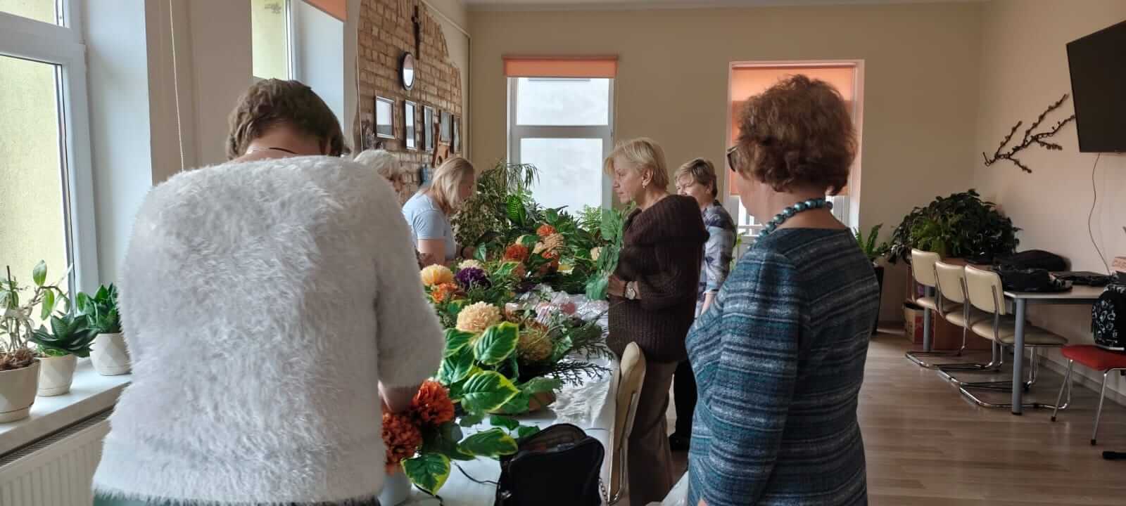 Uczestniczki przyniosły własne kwiaty i dodatki, dzięki czemu każda kompozycja miała indywidualny charakter. Panie korzystały jedynie z podpowiedzi i wskazówek instruktora, który służył pomocą w kwestiach technicznych oraz doborze kolorów. Efekty pracy okazały się znakomite – powstały piękne, starannie wykonane wiązanki, które będą prawdziwą ozdobą grobów bliskich w zbliżającym się dniu Wszystkich Świętych.