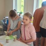 Dzieci tworzyły urocze bukieciki stokrotek z patyczków higienicznych i ozdobnych taśm.