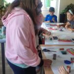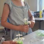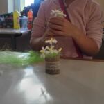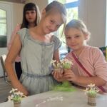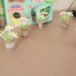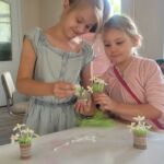 Dzieci tworzyły urocze bukieciki stokrotek z patyczków higienicznych i ozdobnych taśm.