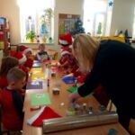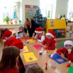 W Mikołajkowy dzień zostałyśmy zaproszone przez panią Elę Skrouba, wychowawczynię klasy zerowej na przeprowadzenie warsztatów plastycznych. Dzieci pod naszym kierunkiem wykonały bożonarodzeniową pocztówkę. Dziękujemy za zaproszenie i miłą atmosferę na zajęciach.