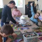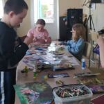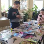 Podczas zajęć plastycznych “oswajaliśmy wilki’. Królowała dziś technika collage. Różnie to wyszło, w zależności co w duszy u kogo grało. Dziewczynki zrobiły wilki w pięknym otoczeniu ptaszków i kwiatków. Prace chłopaków to była eksplozja wymyślnych potworów: wilkogodzille, wilkozille, wilkośmiescho, wrum i oczko. Fantazja bez ograniczeń. Opowieści w trakcie tworzenia, wierzcie mi, były ciekawsze od uzyskanych efektów. A jeden chłopak zrobił świetną info – gazetkę, z której da się wiele odczytać ![]()
