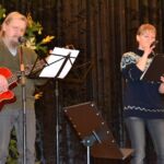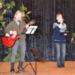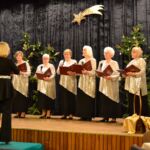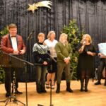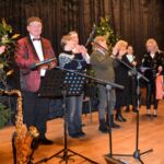 W sobotni wieczór, mimo śnieżycy przyszło sporo osób na piękny Wieczór Kolęd. Po raz trzydziesty w sali GOK rozbrzmiały kolędy śpiewane przez wielu wykonawców. Zaśpiewały zespoły z GOK – Pogodna Jesień i Exit. Kolędy prawosławne wykonał Chór Cerkiewny z parafii prawosławnej w Krynkach pod kierunkiem pani Jolanty Horosz. “Lotosy” w składzie Andrzej Juszko i Ania Juszko zaśpiewali piękne współczesne pieśni bożonarodzeniowe. Wzruszająco zabrzmiała kolęda we wspólnym wykonaniu przez zespoły Pogodna Jesień i Exit. Czesław Jaźwiński, muzyk z Opery i Filharmonii Podlaskiej w Białymstoku dał wspaniały koncert kolęd na różne instrumenty: klarnet, saksofon, akordeon. Było też wspólne z publicznością śpiewanie kolęd. Finałem był utwór “Przekażmy sobie znak pokoju” wykonany przez Czesława Jaźwińskiego i zespół Exit. Niestety z powodu śnieżycy i zamieci śnieżnej nie dojechał na koncert zespół Szudziałowianie. O oprawę stołu i kulinarną w postaci ciast i ciasteczek zatroszczyły się panie z KGW Krynkowianie, a szczególnie grupa Fajerki, którym serdecznie dziękujemy za miłą współpracę. Wiele podziękowań skierowanych do wykonawców i KGW Krynkowianie złożyła pani Burmistrz Jolanta Gudalewska. Wraz z dyrektor GOK Elżbietą Czeremcha wręczyły pamiątkowe podziękowania i drobne upominki. Od 30 lat Wieczór Kolęd wpisał się na trwałe w kalendarz kulturalnych wydarzeń w gminie Krynki i miejmy nadzieję, że za rok znowu się spotkamy.
