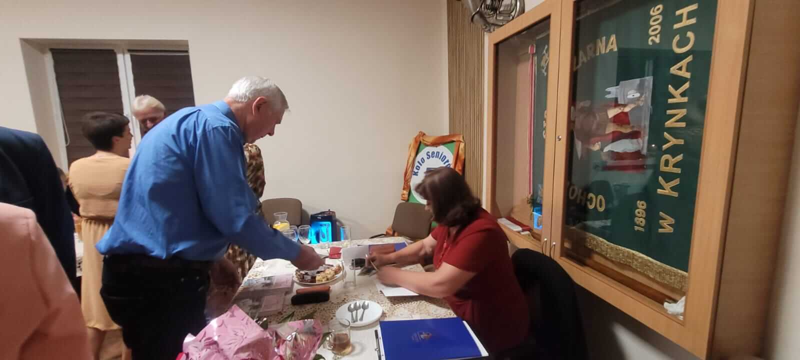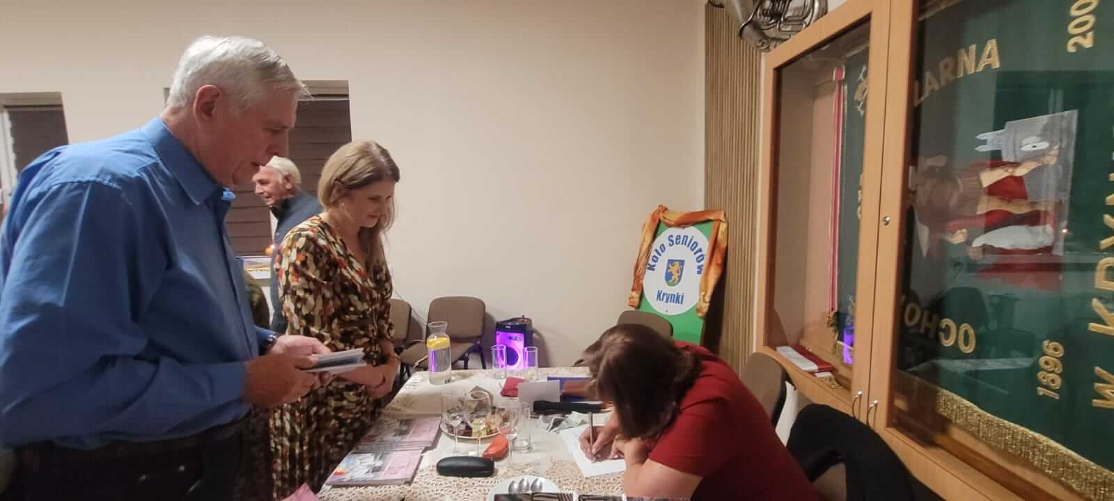 Na spotkanie przybyli licznie zaproszeni goście, w tym przedstawiciele Kół Seniora z Sokółki i Korycina, którzy z zainteresowaniem wsłuchiwali się w poetyckie strofy. Obecne były również władze samorządowe: burmistrz Krynek Jolanta Gudalewska, zastępca burmistrza Emilia Szulborska-Żyndul, radny powiatowy Mariusz Stefanowicz, a także gminy Krynki – radne Grażyna Baranowska, Katarzyna Stefanowicz i Alicja Miron. Wśród uczestników znalazł się również proboszcz parafii prawosławnej w Krynkach, ks. Justyn Jaroszuk, który swoją obecnością podkreślił duchowy wymiar tego wydarzenia.